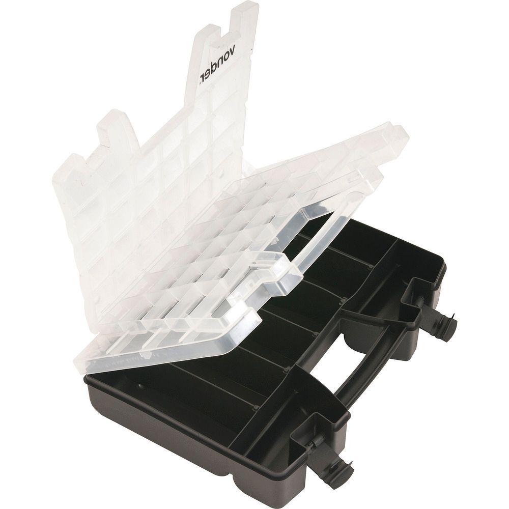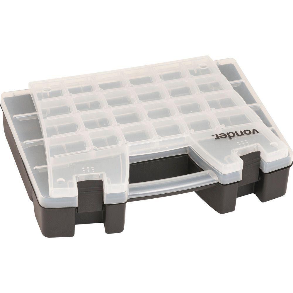 Organizador Plástico 380x285x95mm 34 Divisões Opv0200 VonderConteúdo da embalagem1 Organizador plásticoAplicações e dicas de usoIndicado para organizar e armazenar peças e acessórios em geralDestaques e diferenciaisPossui 34 compartimentosDETALHES TÉCNICOSComprimento do organizador para ferramentas:380,0 mmLargura do organizador para ferramentas:285,0 mmAltura do organizador para ferramentas:95,0 mmMaterial do organizador para ferramentas:PolipropilenoCor do organizador para ferramentas:Preto com abas transparentesCapacidade de carga:15 kg Produto: Organizador | Tipo de organizador: Maleta | Material: Plástico