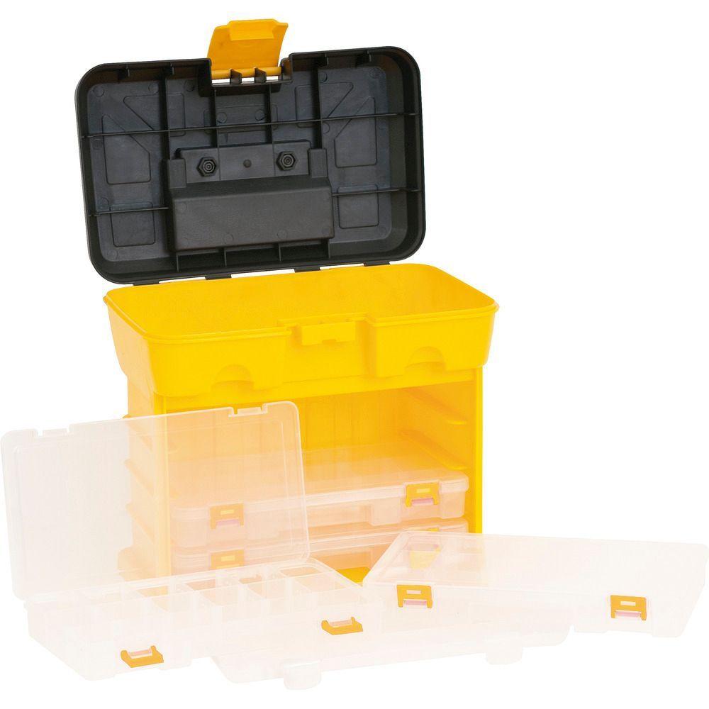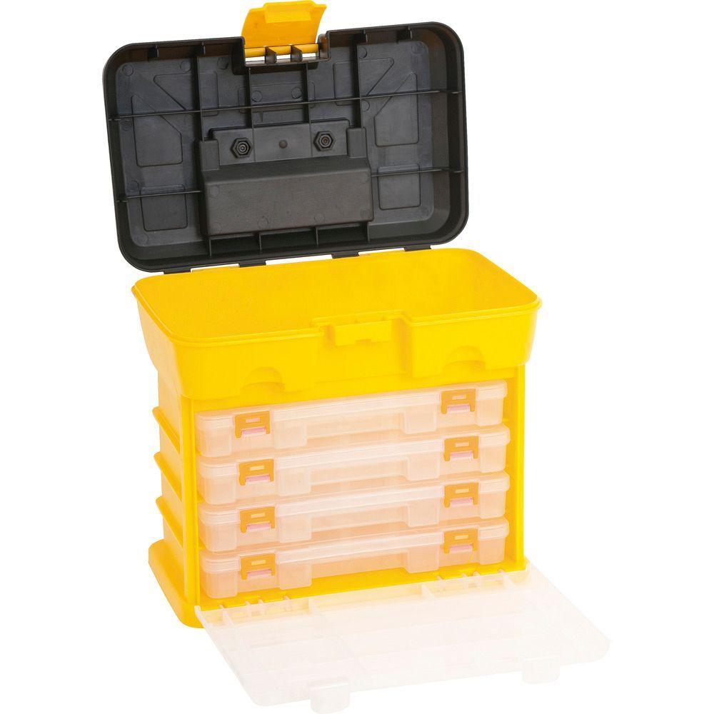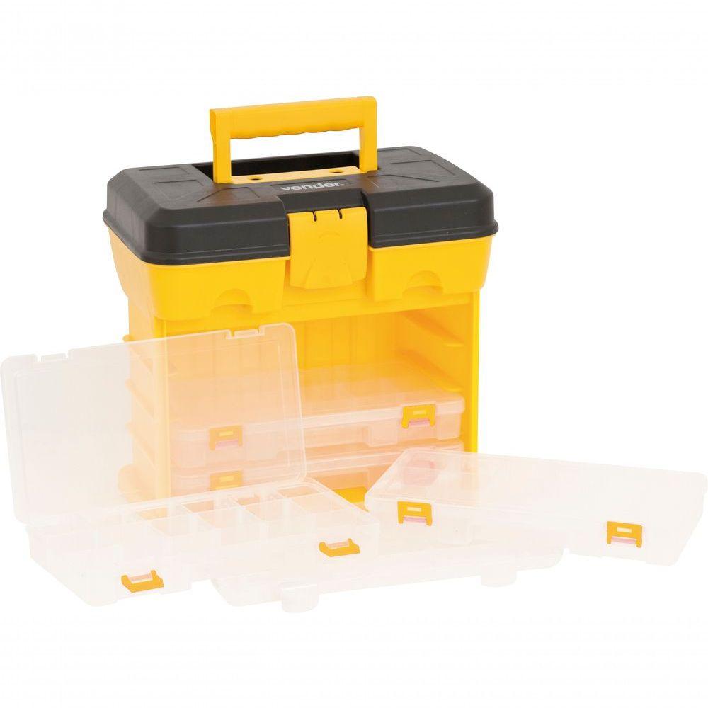 Organizador Plástico 275x175x260mm 4 Bandejas Opv0600 VonderConteúdo da embalagem1 Organizador plásticoAplicações e dicas de usoIndicado para organizar e armazenar peças e acessórios em geralDestaques e diferenciaisPossui alça para , 4 bandejas móveis e 1 compartimento na tampaDETALHES TÉCNICOSComprimento do organizador para ferramentas:275,0 mmLargura do organizador para ferramentas:175,0 mmAltura do organizador para ferramentas:260,0 mmMaterial do organizador para ferramentas:PolipropilenoCor do organizador para ferramentas:Preto/amarelo e transparentesCapacidade de carga:10 kg Produto: Organizador | Tipo de organizador: Maleta | Material: Plástico