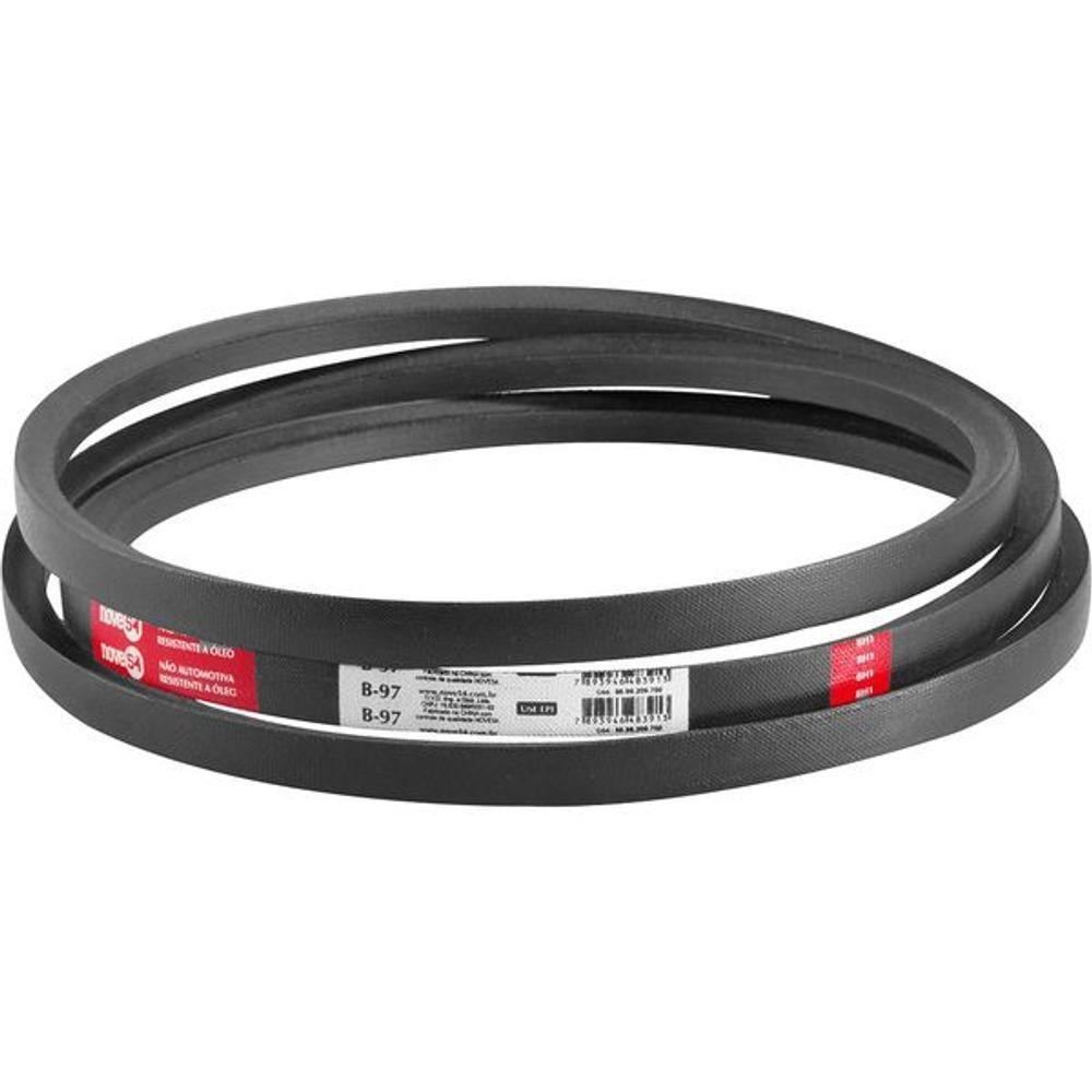 Correia Multi V B-97 Uso Industrial - Nove54Conteúdo da embalagem1 CorreiaAplicações e dicas de usoIndicada para transmissão de força/velocidade do motor para o equipamento. Utilizada em máquinas industriais em geral, compressores, serras circulares de bancada, furadeiras de bancada e de coluna, betoneiras, entre outros. Não automotiva.Destaques e diferenciaisComposto à base de borracha natural que mantém os cordonéis na posição correta e protege a correia contra danos causados pela compressão. Possui tecido de algodão impregnado com borracha natural que protege os componentes internos da abrasão e do óleo. Conta ainda com fios de fibra sintética que têm como função a transmissão de força.DETALHES TÉCNICOS Referência da correia: B - 97 Perfil da correia: Perfil - B Largura da correia: 17 mm Espessura da correia: 11 mm Comprimento interno da correia: 2464,0 mm de peça: 7893946483913