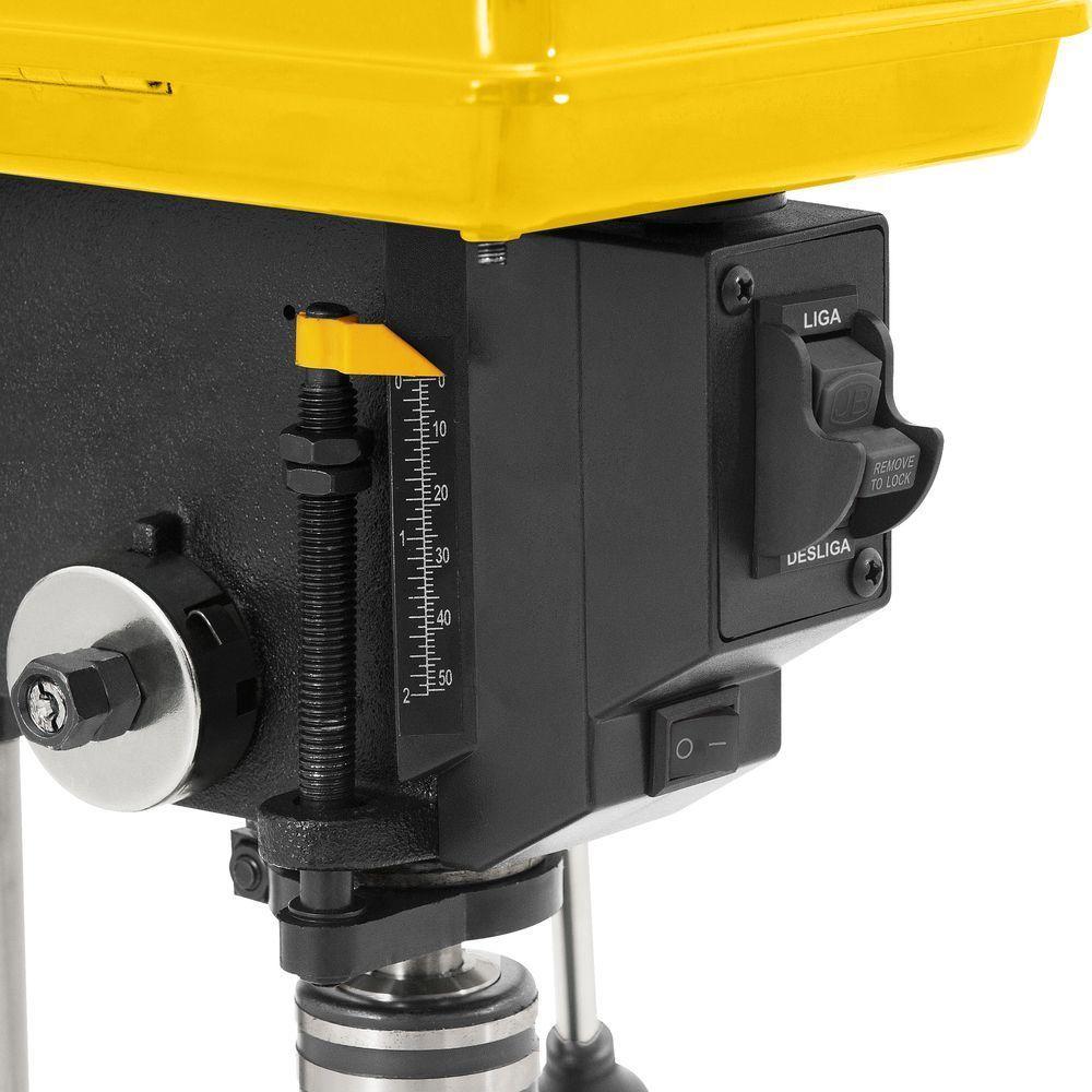 Furadeira De Bancada 1/2 Com Motor 1/3hp Monofásico 110VolConteúdo da embalagem1 Furadeira de bancada. Acompanha: motor, mandril, polia e correia k-26Aplicações e dicas de usoIndicada para perfurações em geral. Utilizada em carpintarias, serralherias, oficinas, entre outros.Destaques e diferenciaisEquipada com motor elétrico, cabo de ligação, chave liga/desliga com dispositivo de , mesa giratória inclinável, lâmpada para iluminação da área do furo e alavanca de avanço com 3 braços. Conta com 5 velocidades.DETALHES TÉCNICOSPotência:1/3 Capacidade do mandril da furadeira:1/2 - 13 mmProfundidade de furação da furadeira:50 mm de velocidades da furadeira:5 velocidadesRotação da furadeira de bancada:620 rpm, 1100 rpm, 1720 rpm, 2340 rpm e 3100 rpmTipo de encaixe do eixo da furadeira:Cone B-16Tensão (V):110V~Peso aproximado:20 kgPrazo de garantia:1 ano Produto: Furadeira | Tensão Elétrica: 127 | Potência: 1/3
