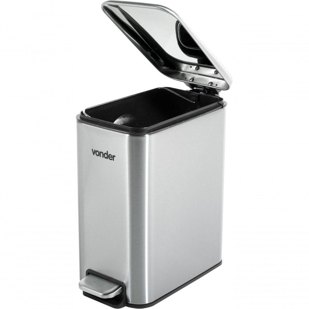 Lixeira Retangular 5 Litros Inox Cinza VonderLixeira Retangular 5 Litros Inox Cinza VonderDescubra a praticidade e a elegância da Lixeira Retangular 5 Litros Inox Cinza da Vonder. Com um design moderno e sofisticado, esta lixeira é perfeita para complementar qualquer ambiente, seja na cozinha, banheiro ou escritório. Fabricada em aço inox 410, ela oferece durabilidade e resistência à corrosão, garantindo um produto de longa vida útil. A abertura por pedal com sistema de amortecimento proporciona uma experiência de uso prática e higiênica, evitando o direto com a tampa.A Vonder é uma marca reconhecida pela qualidade e inovação de seus produtos, e esta lixeira não é exceção. Com capacidade de 5 litros, ela é ideal para o descarte diário de resíduos, mantendo seu espaço sempre limpo e organizado. Além disso, a estrutura em aço inoxidável e a bandeja plástica interna facilitam a limpeza e manutenção do produto.ESPECIFICAÇÕES TÉCNICAS:- Marca: Vonder- Modelo: 6356005003- Cor: Cinza (Inox)- Capacidade em volume: 5 L- Dimensões: Largura: 140 mm / Profundidade: 240 mm / Altura: 290 mm- Material da tampa: Inox- Materiais da estrutura: Aço inoxidável 410- Tipos de aberturas: Pedal- Lugar de colocação: De piso- É de embutir: Não- Código universal de produto: 7893946688981FUNÇÕES E CARACTERÍSTICAS:- Estrutura e tampa em inox para maior durabilidade- Abertura por pedal com sistema de amortecimento- Bandeja plástica interna removível- Alça metálica em aço inox para fácil DICAS DE USO:1. Utilize a lixeira para o descarte de resíduos secos e úmidos.2. Limpe regularmente com um pano úmido e sabão neutro para manter o brilho do inox.3. Evite o uso de produtos abrasivos para não danificar a superfície.ORIGEM DO PRODUTO:- ITENS INCLUSOS:- 1 Lixeira Retangular 5 Litros Inox Cinza VonderAdquira já a sua Lixeira Retangular 5 Litros Inox Cinza Vonder e transforme o seu ambiente com um toque de modernidade e praticidade! NA