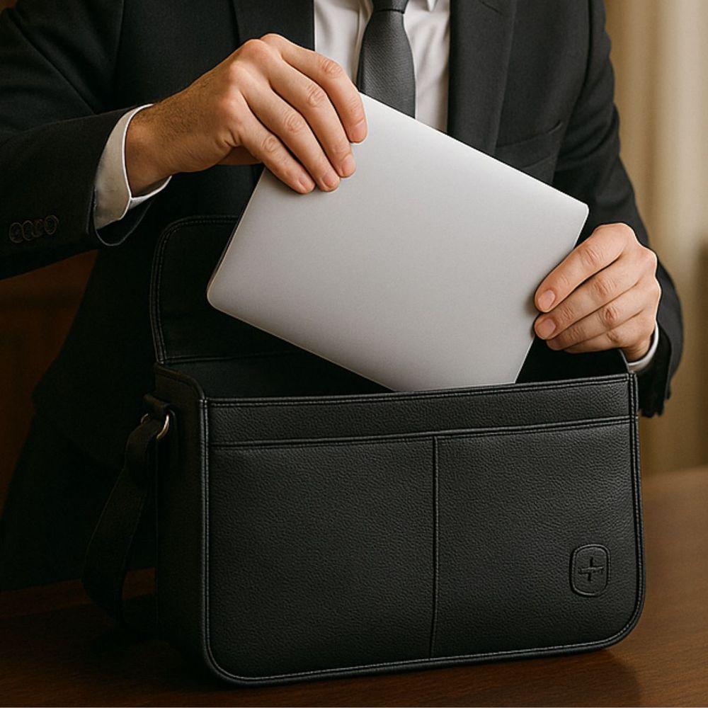 Pasta De Trabalho Executiva Com Alça Lateral Removível Impermeável Em Poliuretano - Handle - Yin's Preto