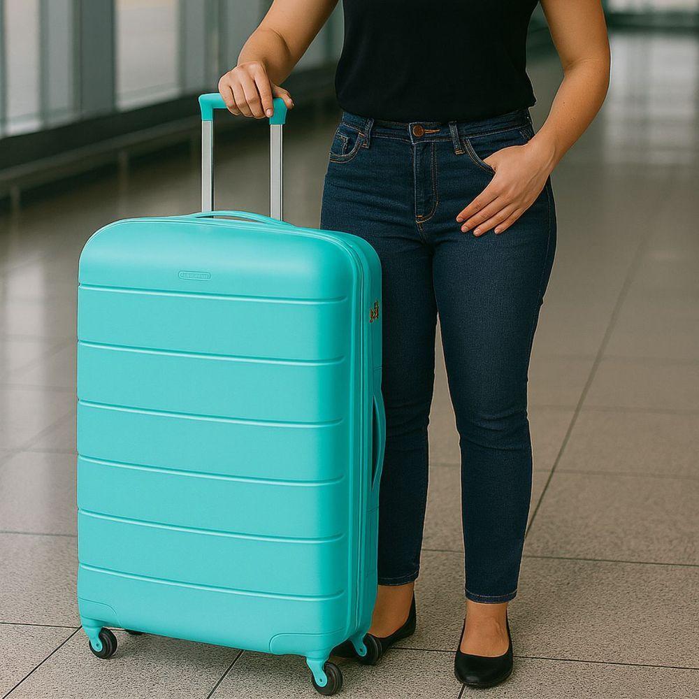 Mala Grande 32kg Viagem Zíper Expansível Em Polipropileno Rodinhas 360º Tsa - Lima - Denlex Cor Azul Turquesa