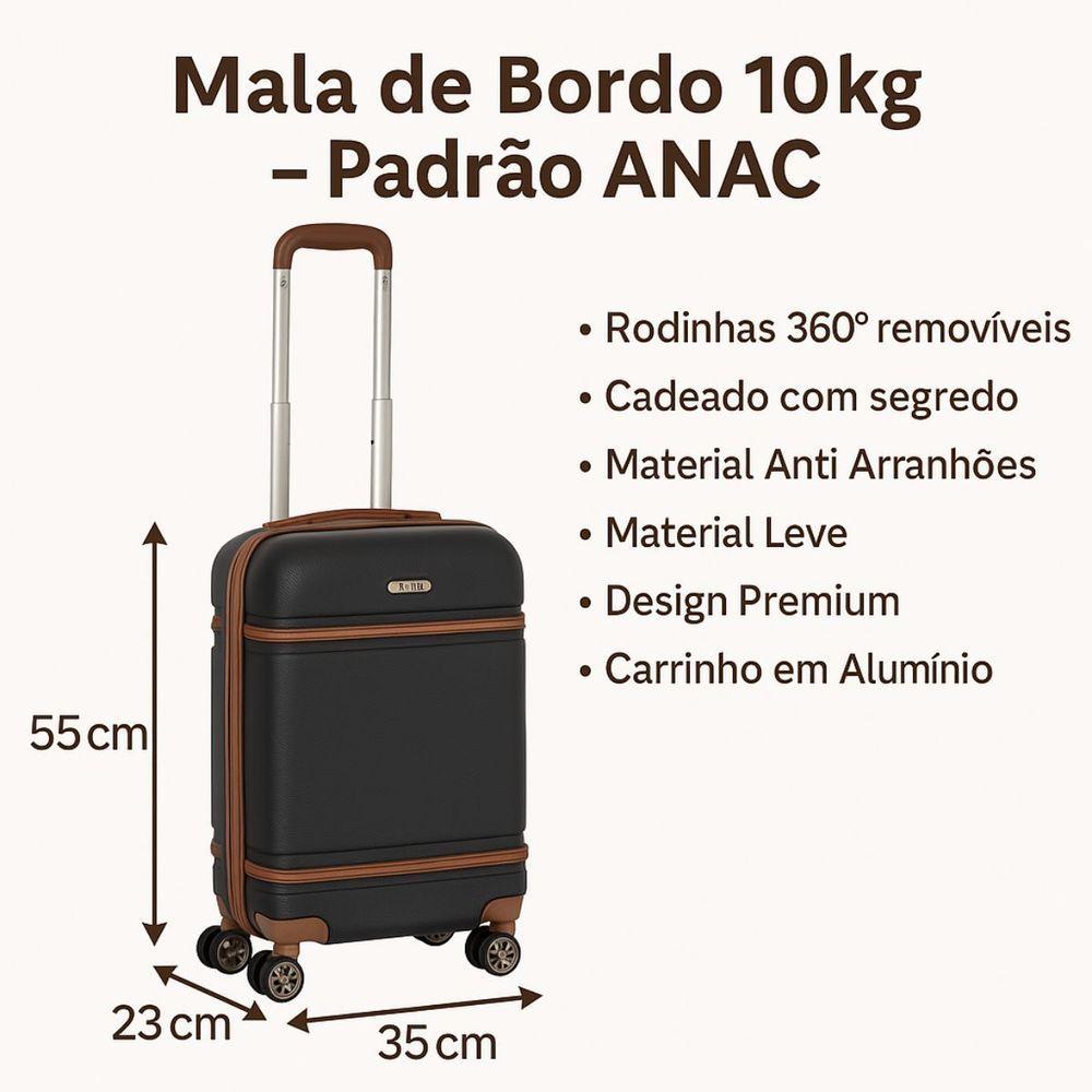 Mala De Viagem De Bordo P/ 10kg Em Abs Com Rodinhas 360º Removíveis E Leve - Padrão Anac - Qualis Cor Preto Mb001