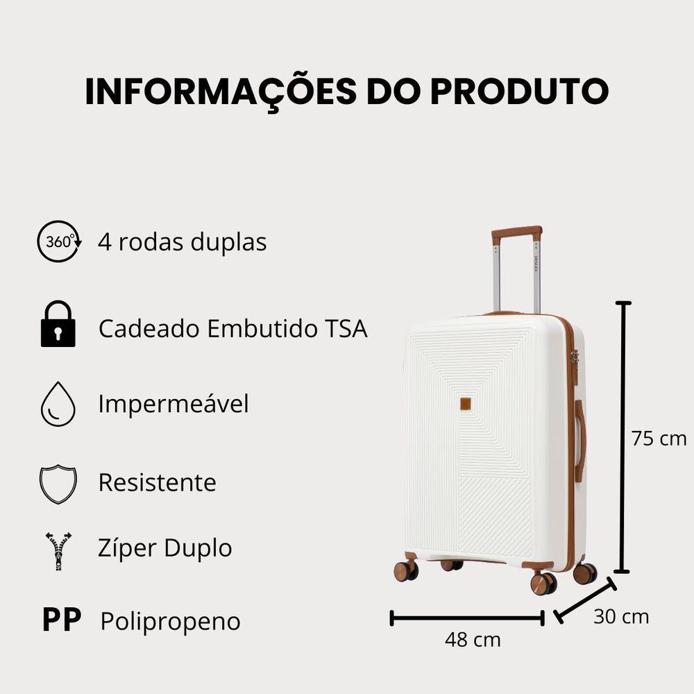 Mala Grande 32kg Viagem Resistente Flexível Em Polipropileno Rodinhas 360º Tsa - Quito - Denlex Cor Branco