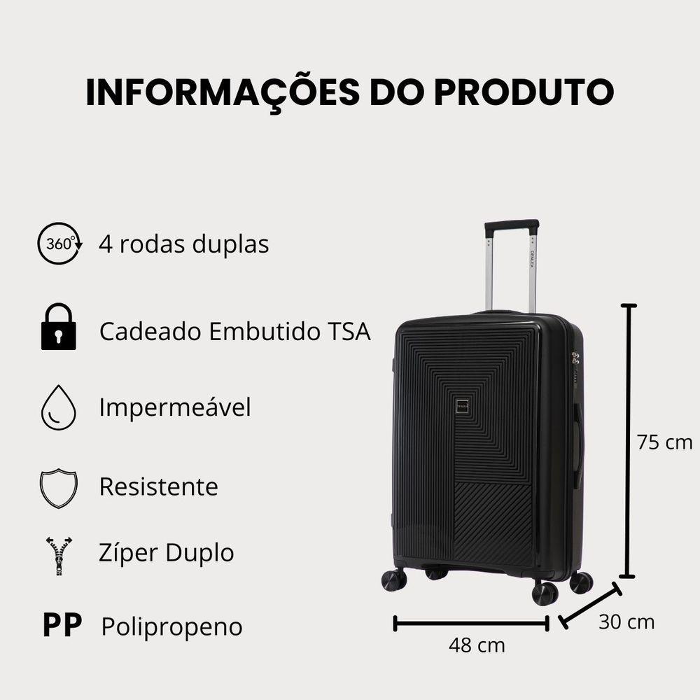 Mala Grande 32kg Viagem Resistente Flexível Em Polipropileno Rodinhas 360º Tsa - Quito - Denlex Cor Preto