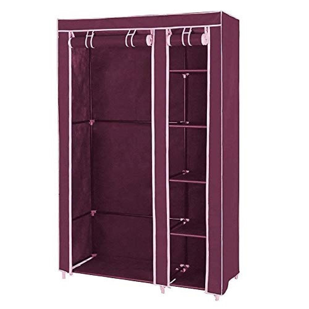 Guarda Roupa Portatil Duplo Cabideiro Arara 4 Prateleiras Sapateira Organizador Desmontavel Viagem Praia Vermelho