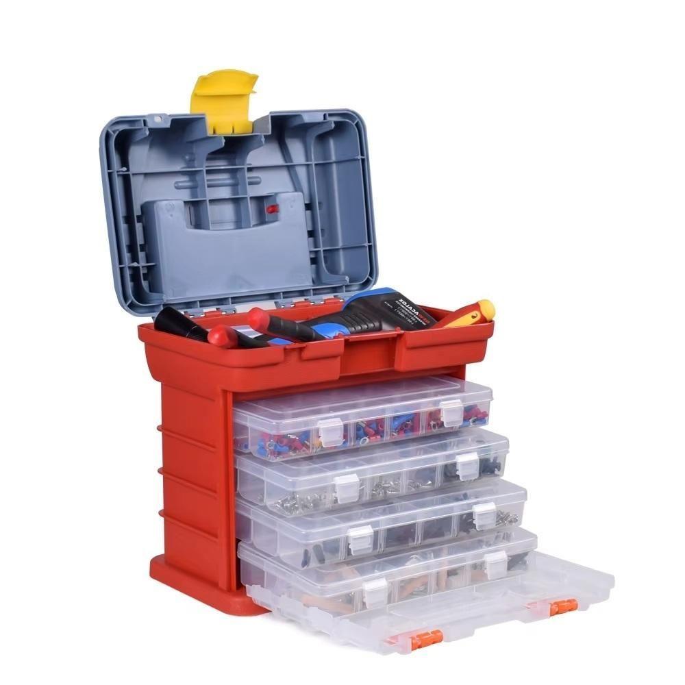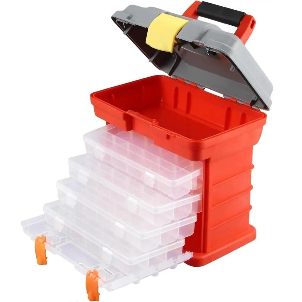 Maleta Pescaria Gaveteiro Caixa Organizadora Multiuso 4 Estojos 72 Divisorias Parafusos Artesanato Portatil