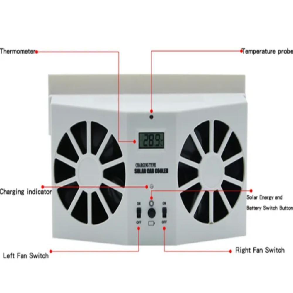Ar Condicionado Solar Automotivo Refrigerador Ventilador Carro Exaustor Purificador PortatilCirculador de Ar Automotivo com Função Exaustor de OdoresMantenha o interior do seu veículo sempre fresco e livre de odores indesejáveis com este circulador de ar automotivo. Com tecnologia avançada e painel solar ajustável, ele proporciona um ambiente mais agradável e ventilado.Características do Produto:Eliminação de Odores: Auxilia na remoção de odores de animais, tabaco e outros agentes indesejáveis.Duto Duplo e Motor Duplo: Proporcionam uma ventilação mais eficiente, aumentando a velocidade de exaustão.Funcionamento Solar e com Bateria: Pode operar por energia solar ou bateria recarregável integrada.Exibição de Temperatura: Permite o monitoramento da variação térmica dentro do veículo.Uso Versátil: Funciona mesmo em dias chuvosos e pode ser instalado facilmente.Especificações Técnicas:Material: ABS resistenteCor: Preto ou Branco (enviado conforme disponibilidade)Baterias: 2x NI-MH 1,2V AA 800mAh (inclusas)Dimensões do produto: 12 cm x 20 cm x 4 cmDimensões do painel solar: 16,5 cm x 7,4 cmConteúdo da Embalagem:1x Circulador de Ar Automotivo2x Tiras de vedação de borracha1x Manual do usuárioObservações:A eficiência pode variar de acordo com as condições climáticas e o posicionamento do painel solar.As cores são enviadas conforme disponibilidade em estoque, não sendo possível escolher.O vídeo é meramente ilustrativo.Circulador de Ar Automotivo com Função Exaustor de OdoresMantenha o interior do seu veículo sempre fresco e livre de odores indesejáveis com este circulador de ar automotivo. Com tecnologia avançada e painel solar ajustável, ele proporciona um ambiente mais agradável e ventilado.Características do Produto:Eliminação de Odores: Auxilia na remoção de odores de animais, tabaco e outros agentes indesejáveis.Duto Duplo e Motor Duplo: Proporcionam uma ventilação mais eficiente, aumentando a velocidade de exaustão.Funcionamento Solar e com Bateria: Pode operar por energia solar ou bateria recarregável integrada.Exibição de Temperatura: Permite o monitoramento da variação térmica dentro do veículo.Uso Versátil: Funciona mesmo em dias chuvosos e pode ser instalado facilmente.Especificações Técnicas:Material: ABS resistenteCor: Preto ou Branco (enviado conforme disponibilidade)Baterias: 2x NI-MH 1,2V AA 800mAh (inclusas)Dimensões do produto: 12 cm x 20 cm x 4 cmDimensões do painel solar: 16,5 cm x 7,4 cmConteúdo da Embalagem:1x Circulador de Ar Automotivo2x Tiras de vedação de borracha1x Manual do usuárioObservações:A eficiência pode variar de acordo com as condições climáticas e o posicionamento do painel solar.As cores são enviadas conforme disponibilidade em estoque, não sendo possível escolher.O vídeo é meramente ilustrativo.