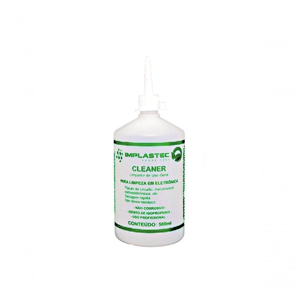 Cleaner Implastec Limpeza De Pci 500mlInformações do Produto:O Cleaner, é um limpador de uso geral, promovendo a limpeza de substâncias orgânicas naturais ou sintéticas, tais como: resinas, óleos, gorduras, alcaloides, acetatos de celulose, nitrocelulose e outras resinas utilizadas nas preparações de tintas, vernizes e pasta para solda estanho.Principais AplicaçõesO Cleaner é utilizado industrialmente emeletrônicos para limpeza de Placas de Circuito Impresso (PCI) e outras limpezas, tintas e vernizes e tinta para impressão.Características? Pureza (%m/*m), mínimo: 99,5? Densidade 20/20°C: 0,900 ? 0,903? Acidez como ácido acético, (%m/m0, máximo: 0,01? Faixa de destilação a 760 mmHg, (°C): 75,5 ? 78? Água, (teor %), máximo: 0,03? Solubilidade em água: CompletaManuseio e Método de AplicaçãoUse óculos de proteção contra eventuais respingos.Use em local com grande ventilação.Mantenha o frasco na posição vertical a uma distância de aproximadamente 20 cm do local de aplicação.*Imagem meramente ilustrativaInformações do Produto:O Cleaner, é um limpador de uso geral, promovendo a limpeza de substâncias orgânicas naturais ou sintéticas, tais como: resinas, óleos, gorduras, alcaloides, acetatos de celulose, nitrocelulose e outras resinas utilizadas nas preparações de tintas, vernizes e pasta para solda estanho.Principais AplicaçõesO Cleaner é utilizado industrialmente emeletrônicos para limpeza de Placas de Circuito Impresso (PCI) e outras limpezas, tintas e vernizes e tinta para impressão.Características? Pureza (%m/*m), mínimo: 99,5? Densidade 20/20°C: 0,900 ? 0,903? Acidez como ácido acético, (%m/m0, máximo: 0,01? Faixa de destilação a 760 mmHg, (°C): 75,5 ? 78? Água, (teor %), máximo: 0,03? Solubilidade em água: CompletaManuseio e Método de AplicaçãoUse óculos de proteção contra eventuais respingos.Use em local com grande ventilação.Mantenha o frasco na posição vertical a uma distância de aproximadamente 20 cm do local de aplicação.*Imagem meramente ilustrativa