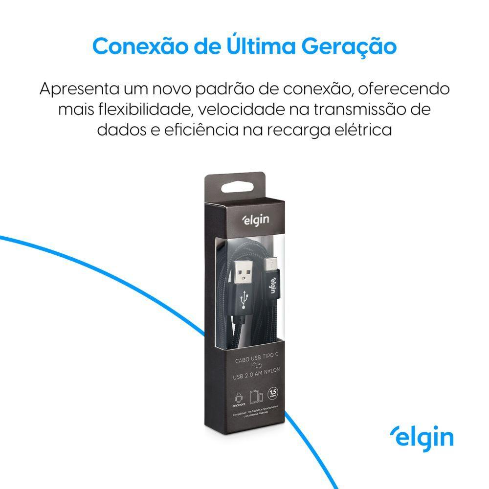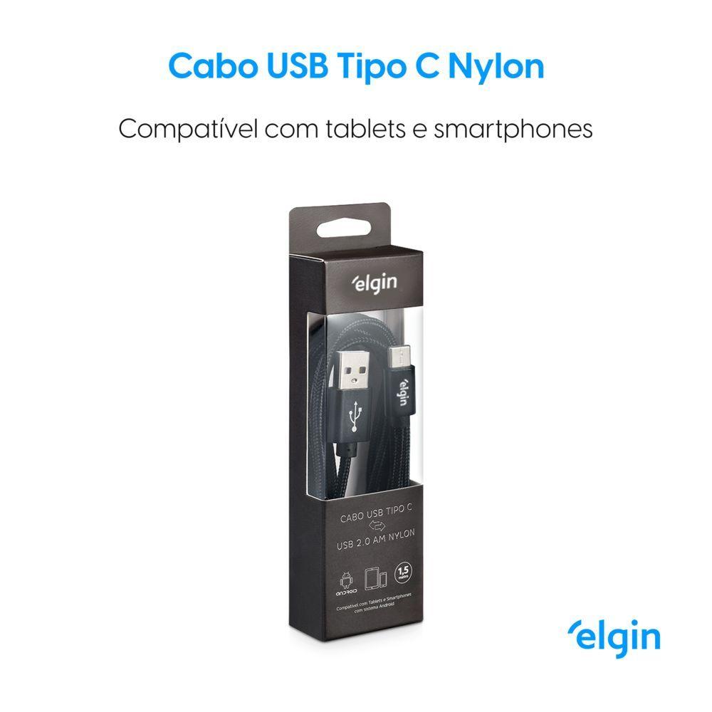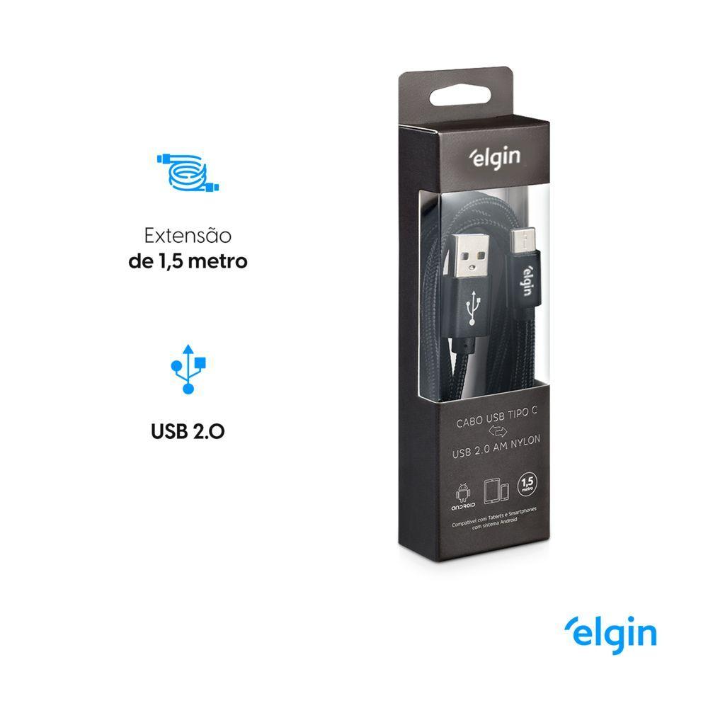 Cabo Usb-C Nylon Preto - 1,5m 480mbpsO Cabo USB 2.0 Tipo C para Sistema Android possui um revestimento em nylon na cor preta, proporcionando maior durabilidade e resistência. Ele conta com conectores tipo C e tipo A Macho (AM), permitindo uma conexão versátil com diversos dispositivos Android. Com uma capacidade de transferência de dados de até 480Mbps, esse cabo de 1,5 metro de comprimento é compatível com os novos modelos Android. Ele é adequado para sincronização, transmissão de dados e recarga elétrica, e vem com garantia e confiabilidade da marca Elgin.
