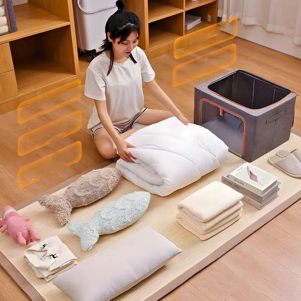 Caixa Organizadora De Roupas Multiuso Dobrável - AzulDescrição do Produto: Este organizador de bolsas é uma solução prática e durável para armazenar roupas de cama, edredons, cobertores e outros itens volumosos. Feito de tecido grosso de poliéster, com design resistente, ele garante maior durabilidade e proteção para os seus pertences. Ideal para quem busca otimização de espaço e organização.Características:- Alta Capacidade de Armazenamento: O organizador é projetado para comportar grandes volumes de roupas, edredons, cobertores e outros itens pesados, mantendo tudo organizado e protegido.- Tecido Grosso e Resistente: Confeccionado em tecido de poliéster de alta qualidade, o que assegura resistência ao desgaste e maior durabilidade do produto.- Zíper Bidirecional Resistente: O zíper de alta qualidade facilita o manuseio, permitindo abrir e fechar a bolsa com facilidade, mesmo quando ela estiver cheia. O design bidirecional oferece mais praticidade.- Janela Transparente: A janela frontal permite visualizar rapidamente o conteúdo da bolsa, sem a necessidade de abrir, o que facilita a organização e economiza tempo.- Design Dobrável: Quando não estiver em uso, o organizador pode ser dobrado e armazenado facilmente, sem ocupar muito espaço, ideal para quem tem pouco espaço de armazenamento.- Estrutura Metálica Reforçada: A bolsa vem equipada com uma estrutura metálica que oferece maior rigidez e estabilidade, permitindo que ela seja empilhada sem risco de desabar.- Versatilidade de Uso: Ideal para guardar roupas de cama, cobertores, edredons, brinquedos, roupas de bebê e outros itens. Pode ser usado em diversos ambientes como quartos, armários, sótãos, porões, e até mesmo em veículos.- Fácil Transporte: As alças laterais facilitam o transporte da bolsa de armazenamento, tornando-a prática para qualquer necessidade.Benefícios:- Espaço Otimizado: Maximize seu espaço de armazenamento, organizando roupas e outros itens de maneira eficiente e acessível.- Proteção contra Poeira: O design fechado e o material resistente ajudam a proteger seus itens da poeira, sujeira e danos.- Estabilidade ao Empilhar: A estrutura metálica interna permite que as bolsas sejam empilhadas de forma segura, sem comprometer a estabilidade.Especificações Técnicas:- Material: Poliéster (a prova d'água)Conteúdo da Embalagem:- 1x Bolsa de ArmazenamentoIdeal para:- Armazenamento de roupas de cama, edredons, cobertores e outros itens volumosos.- Manter a organização de dormitórios, armários e closets.Esta bolsa de armazenamento é a solução perfeita para quem precisa de praticidade e organização no dia a dia. Com ela, você garante a proteção dos seus itens e otimiza o espaço na sua casa.Alguns produtos podem apresentar variações na tonalidade da cor, detalhes e características menores, mas isso não afeta a funcionalidade ou a troca do item.Descrição do Produto: Este organizador de bolsas é uma solução prática e durável para armazenar roupas de cama, edredons, cobertores e outros itens volumosos. Feito de tecido grosso de poliéster, com design resistente, ele garante maior durabilidade e proteção para os seus pertences. Ideal para quem busca otimização de espaço e organização.Características:- Alta Capacidade de Armazenamento: O organizador é projetado para comportar grandes volumes de roupas, edredons, cobertores e outros itens pesados, mantendo tudo organizado e protegido.- Tecido Grosso e Resistente: Confeccionado em tecido de poliéster de alta qualidade, o que assegura resistência ao desgaste e maior durabilidade do produto.- Zíper Bidirecional Resistente: O zíper de alta qualidade facilita o manuseio, permitindo abrir e fechar a bolsa com facilidade, mesmo quando ela estiver cheia. O design bidirecional oferece mais praticidade.- Janela Transparente: A janela frontal permite visualizar rapidamente o conteúdo da bolsa, sem a necessidade de abrir, o que facilita a organização e economiza tempo.- Design Dobrável: Quando não estiver em uso, o organizador pode ser dobrado e armazenado facilmente, sem ocupar muito espaço, ideal para quem tem pouco espaço de armazenamento.- Estrutura Metálica Reforçada: A bolsa vem equipada com uma estrutura metálica que oferece maior rigidez e estabilidade, permitindo que ela seja empilhada sem risco de desabar.- Versatilidade de Uso: Ideal para guardar roupas de cama, cobertores, edredons, brinquedos, roupas de bebê e outros itens. Pode ser usado em diversos ambientes como quartos, armários, sótãos, porões, e até mesmo em veículos.- Fácil Transporte: As alças laterais facilitam o transporte da bolsa de armazenamento, tornando-a prática para qualquer necessidade.Benefícios:- Espaço Otimizado: Maximize seu espaço de armazenamento, organizando roupas e outros itens de maneira eficiente e acessível.- Proteção contra Poeira: O design fechado e o material resistente ajudam a proteger seus itens da poeira, sujeira e danos.- Estabilidade ao Empilhar: A estrutura metálica interna permite que as bolsas sejam empilhadas de forma segura, sem comprometer a estabilidade.Especificações Técnicas:- Material: Poliéster (a prova d'água)Conteúdo da Embalagem:- 1x Bolsa de ArmazenamentoIdeal para:- Armazenamento de roupas de cama, edredons, cobertores e outros itens volumosos.- Manter a organização de dormitórios, armários e closets.Esta bolsa de armazenamento é a solução perfeita para quem precisa de praticidade e organização no dia a dia. Com ela, você garante a proteção dos seus itens e otimiza o espaço na sua casa.Alguns produtos podem apresentar variações na tonalidade da cor, detalhes e características menores, mas isso não afeta a funcionalidade ou a troca do item.