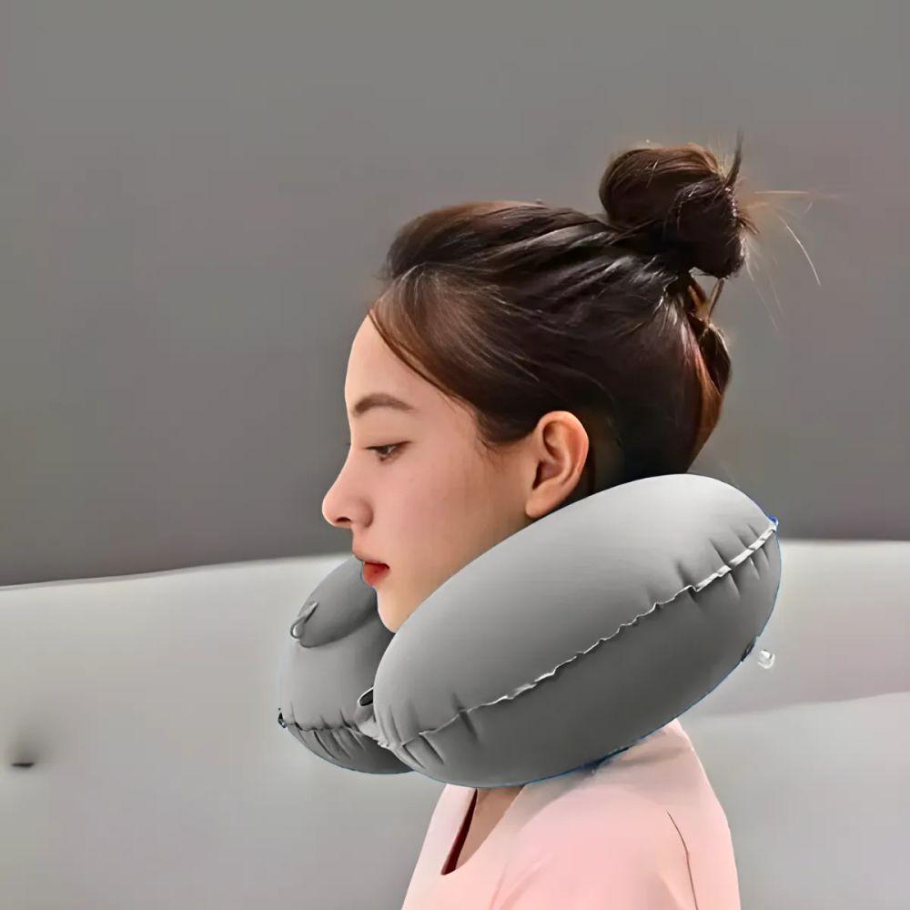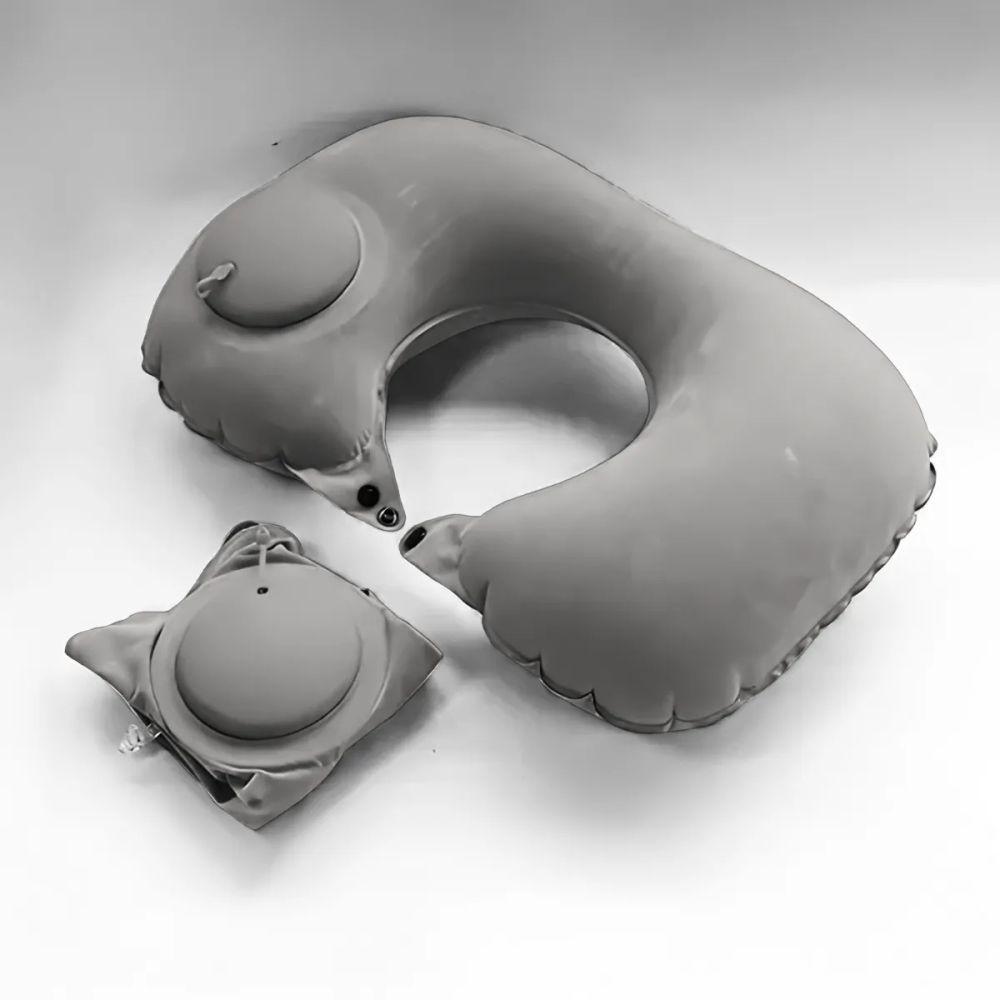 Travesseiro Almofada De Pescoço Inflável E Portátil - Cinza