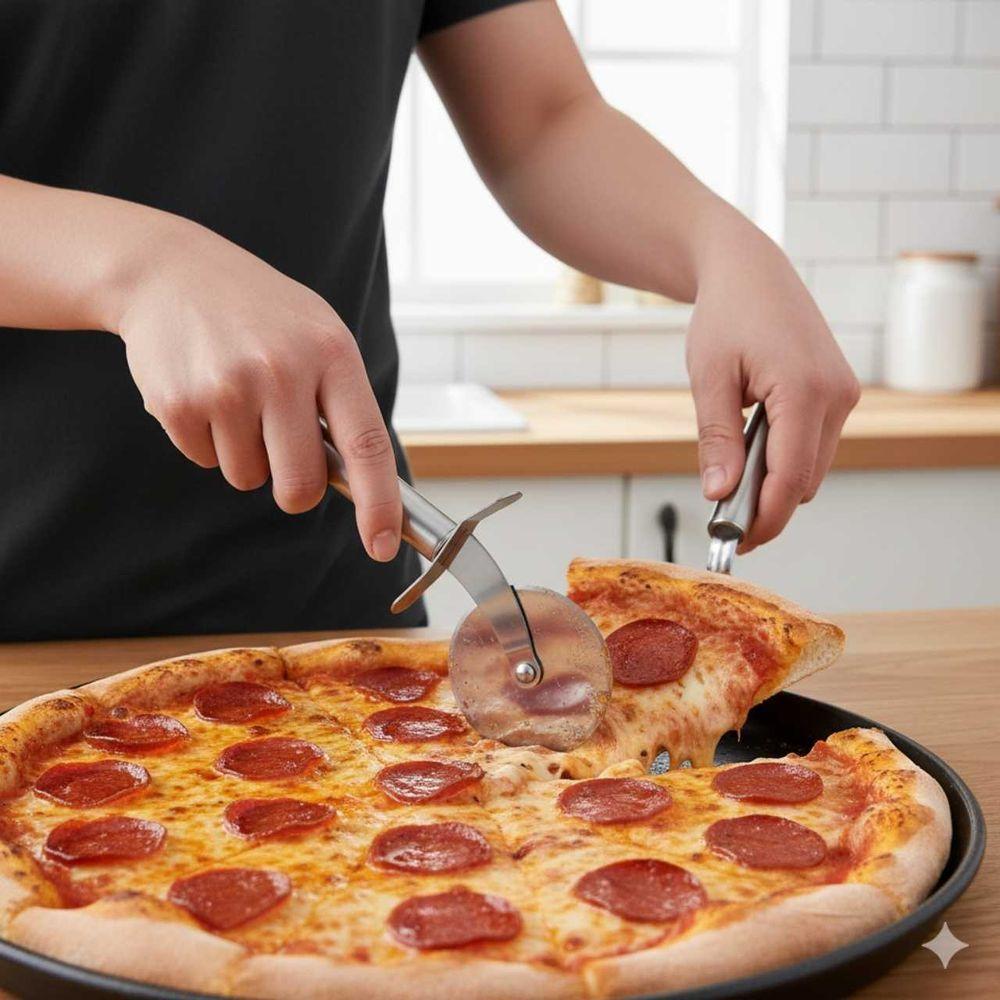 Kit Espatula E Cortador Para Pizza, Torta E Bolo Conjunto Premium Aço Inox Conjunto Premium de Aço Inox para Pizza:- Espátula Cortadora (26cm)- Cortador de Pizza Redondo (20cm)Eleve sua experiência culinária com nosso conjunto elegante e funcional de utensílios para pizza em aço inox de alta qualidade. Projetado para durabilidade e desempenho, este kit é essencial para qualquer amante de pizza.Características do Produto: - Espátula Cortadora de Pizza em Aço Inox (26 cm): Perfeita para servir fatias com precisão. Sua lâmina serrilhada corta facilmente a massa e a crosta, enquanto a superfície plana garante que cada pedaço seja transferido para o prato sem desmoronar. O cabo ergonômico em aço inox oferece conforto e firmeza no manuseio. - Cortador de Pizza Redondo em Aço Inox (20 cm): Com uma lâmina giratória afiada, este cortador desliza sem esforço pela pizza, criando cortes limpos e perfeitos. Ideal para todos os tipos de massa, ele possui um protetor de dedos para segurança e um cabo resistente em aço inox para um controle total.Benefícios: - Material de Alta Qualidade: Fabricados em aço inox, garantem resistência à corrosão, durabilidade e fácil limpeza. - Design Moderno e Ergonômico: Cabos projetados para um manuseio confortável e seguro. - Versatilidade: Ideal para pizza, tortas, bolos e outros assados. - Fácil de Limpar: Podem ser lavados à mão ou na máquina de lavar louça.Surpreenda seus convidados e desfrute de cada fatia com a praticidade e sofisticação que este conjunto oferece!