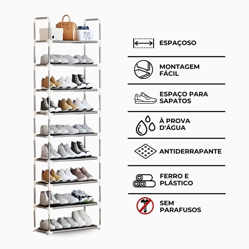 Sapateira Vertical Organizador Com 9 PrateleirasA Sapateira Vertical Giga é a solução ideal para quem busca organização e praticidade no dia a dia. Com um design moderno e funcional, este organizador possui 9 prateleiras, permitindo o armazenamento de até 27 pares de sapatos. Ideal para otimizar espaços em closets, quartos ou até mesmo na entrada da casa.Características:Capacidade: Armazena até 27 pares de sapatos, ideal para quem possui uma coleção variada.Material: Confeccionada em plástico resistente, garante durabilidade e fácil limpeza.Dimensões: Compacta, perfeita para ambientes pequenos ou com espaço limitadoMontagem: Produto que requer montagem, com instruções claras que facilitam o processo.Design: Estilo moderno que se adapta a qualquer tipo de decoração, agregando valor ao ambiente.Vantagens:Otimização de Espaço: Seu formato vertical permite aproveitar áreas reduzidas, mantendo os calçados organizados e à mão.Acessibilidade: Facilita a visualização e o acesso rápido aos sapatos, evitando a bagunça.Praticidade: Ideal para uso diário, ajudando a manter a ordem sem esforço.Cuidados:Para prolongar a vida útil do produto, recomenda-se evitar a exposição direta ao sol por longos períodos e realizar a limpeza com pano úmido. Não usar produtos abrasivos.Instalação:A montagem é simples e rápida. Acompanha manual com instruções passo a passo, garantindo que você possa montar sua sapateira sem dificuldades.Conteúdo da Embalagem:- 74 tubos de aço- 40 encaixes- 9 bases de pano- 1 manual de montagem na caixaSe você procura um organizador eficiente para seus calçados, a Sapateira Vertical 8 Prateleiras Giga é a escolha certa. Prática, estilosa e funcional, transforma a maneira como você armazena e cuida de seus sapatos. Ideal para qualquer ambiente, proporciona um toque de organização e sofisticação ao seu espaço.Alguns produtos podem apresentar variações na tonalidade da cor, detalhes e características menores, mas isso não afeta a funcionalidade ou a troca do item.A Sapateira Vertical Giga é a solução ideal para quem busca organização e praticidade no dia a dia. Com um design moderno e funcional, este organizador possui 9 prateleiras, permitindo o armazenamento de até 27 pares de sapatos. Ideal para otimizar espaços em closets, quartos ou até mesmo na entrada da casa.Características:Capacidade: Armazena até 27 pares de sapatos, ideal para quem possui uma coleção variada.Material: Confeccionada em plástico resistente, garante durabilidade e fácil limpeza.Dimensões: Compacta, perfeita para ambientes pequenos ou com espaço limitadoMontagem: Produto que requer montagem, com instruções claras que facilitam o processo.Design: Estilo moderno que se adapta a qualquer tipo de decoração, agregando valor ao ambiente.Vantagens:Otimização de Espaço: Seu formato vertical permite aproveitar áreas reduzidas, mantendo os calçados organizados e à mão.Acessibilidade: Facilita a visualização e o acesso rápido aos sapatos, evitando a bagunça.Praticidade: Ideal para uso diário, ajudando a manter a ordem sem esforço.Cuidados:Para prolongar a vida útil do produto, recomenda-se evitar a exposição direta ao sol por longos períodos e realizar a limpeza com pano úmido. Não usar produtos abrasivos.Instalação:A montagem é simples e rápida. Acompanha manual com instruções passo a passo, garantindo que você possa montar sua sapateira sem dificuldades.Conteúdo da Embalagem:- 74 tubos de aço- 40 encaixes- 9 bases de pano- 1 manual de montagem na caixaSe você procura um organizador eficiente para seus calçados, a Sapateira Vertical 8 Prateleiras Giga é a escolha certa. Prática, estilosa e funcional, transforma a maneira como você armazena e cuida de seus sapatos. Ideal para qualquer ambiente, proporciona um toque de organização e sofisticação ao seu espaço.Alguns produtos podem apresentar variações na tonalidade da cor, detalhes e características menores, mas isso não afeta a funcionalidade ou a troca do item.