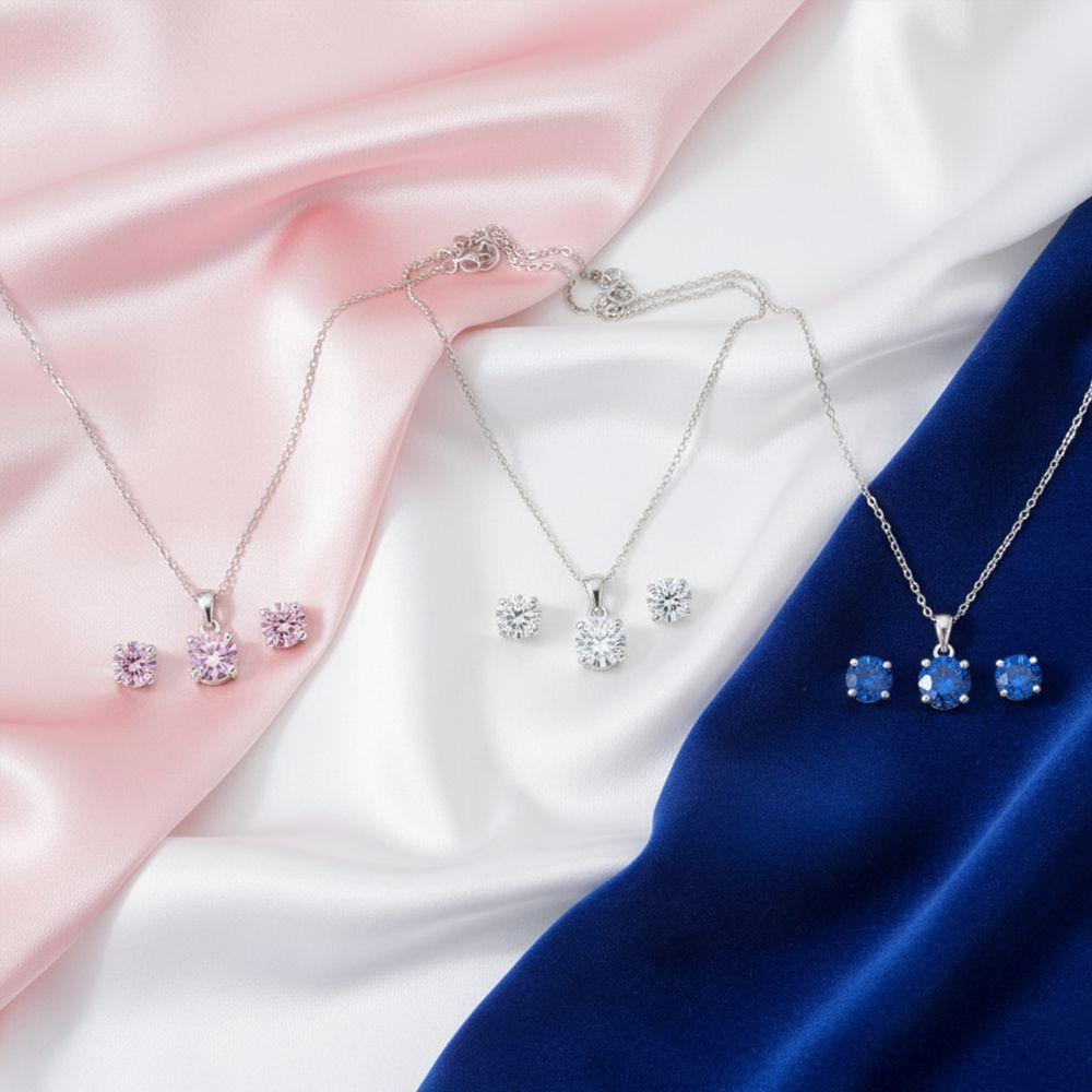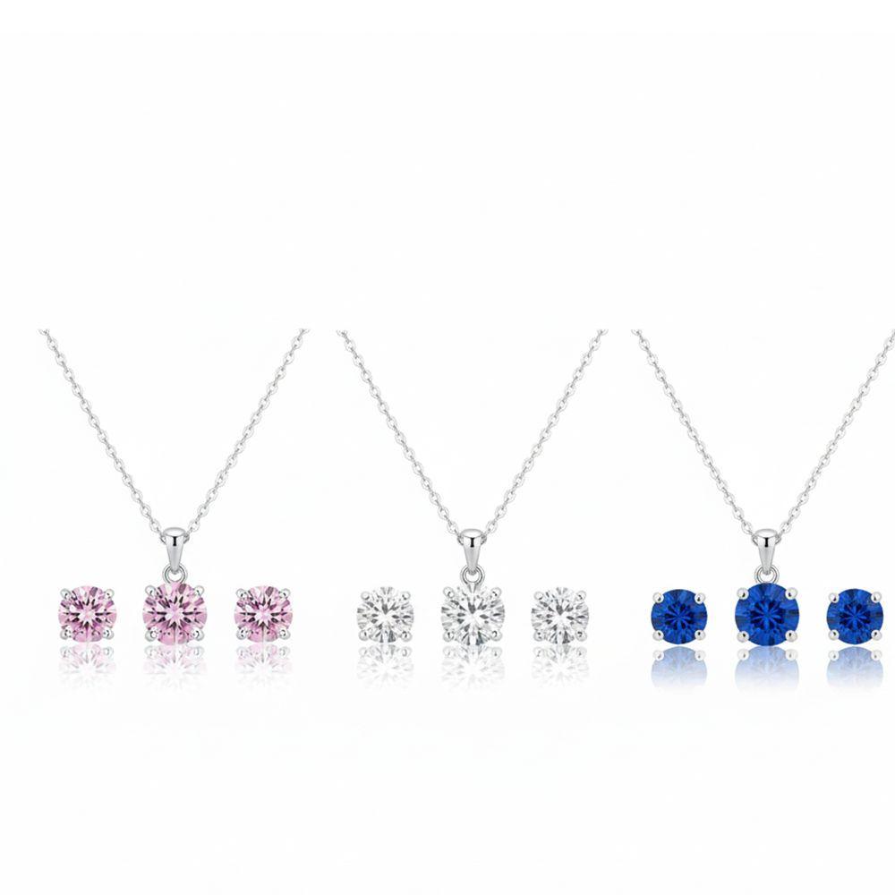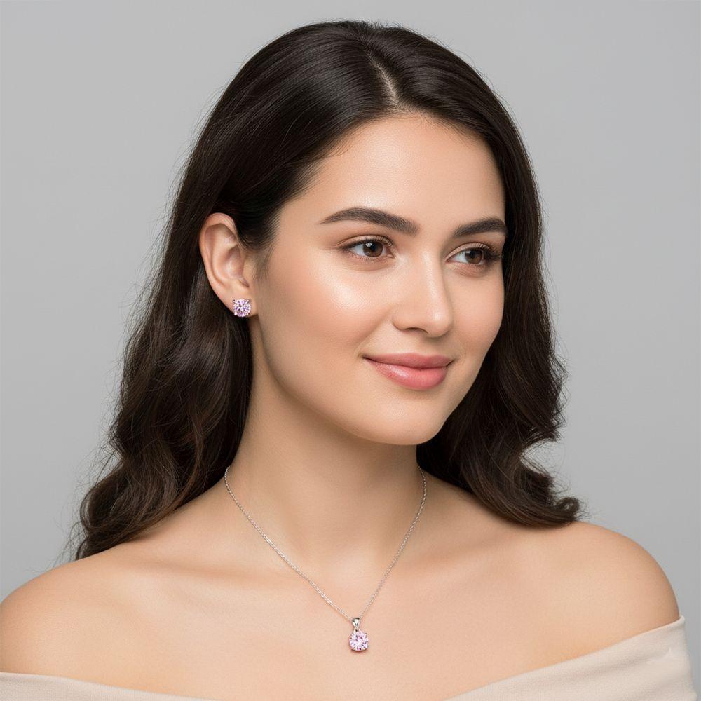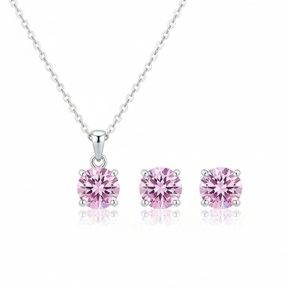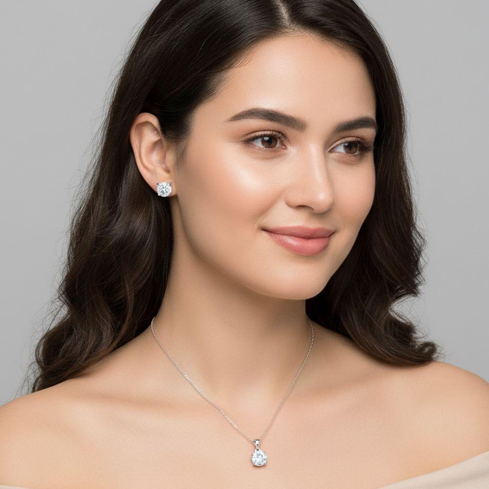 Conjunto Pingente E Brincos Amaré Prata 925 - Zircônia Redonda Branco