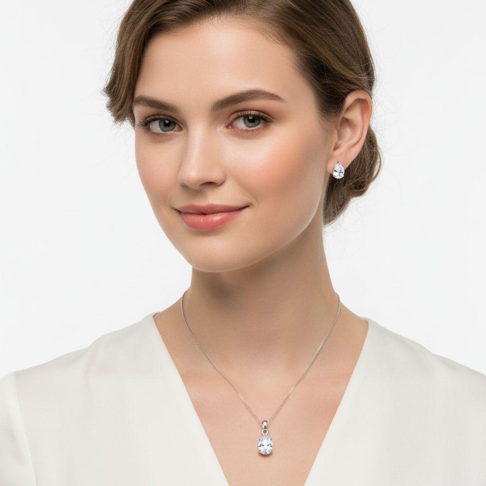 Conjunto Amaré Prata 925 Com Pingente E Brincos Gota Zircônia Colorida Joias Elegantes E Versáteis Azul Bebê