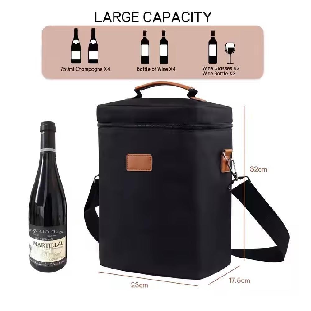 Bolsa Termica Porta Vinhos Taças 4 Garrafas Mochila Wine Bag Cooler Com Divisorias Removiveis Bag