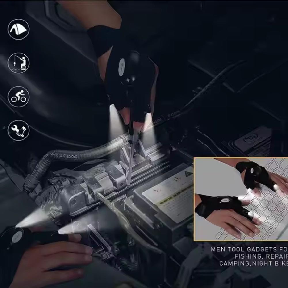 Luva Lanterna Mao Pesca Luminaria Iluminacao Led Consertos A Prova Agua Camping Reparos Automoveis
