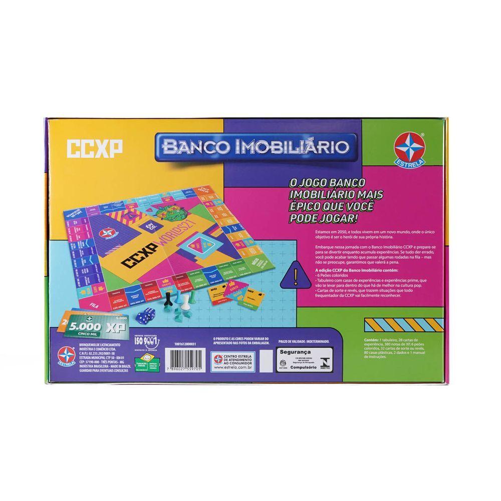 Banco Imobiliário CcxpEmbarque nessa jornada com o Banco Imobiliário CCXP e prepare-se para se divertir enquanto acumula experiências! Se tudo der errado, você pode acabar tendo que passar algumas rodadas na fila, mas não se preocupe, garantimos que valerá a pena. Você pode passar pelas casas de experiência e experiência , que te levam para dentro do que há de melhor na cultura pop, e pegar cartas sorte e revés que trazem situações que todo frequentador da CCXP vai reconhecer e até se identificar. Será o Banco Imobiliário mais épico que você vai jogar! Idade Recomendada: A partir de 8 anos | Material: Papel e plastico | Quantidade de Peças: 01 tabuleiro,28 cartas de experiência,32 cartões sorterevés,380 notas de XP,80 casas plásticas,02 dados ,6 peões ,01 manual de instruções | Código Inmetro: CEBRI/IQB 006332 | Formato: Físico | Nome do jogo de tabuleiro: Banco Imobiliário CCXP