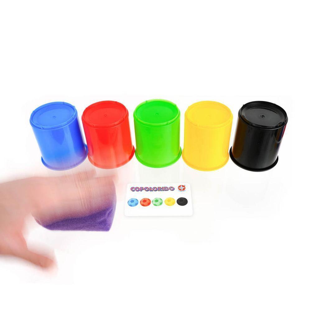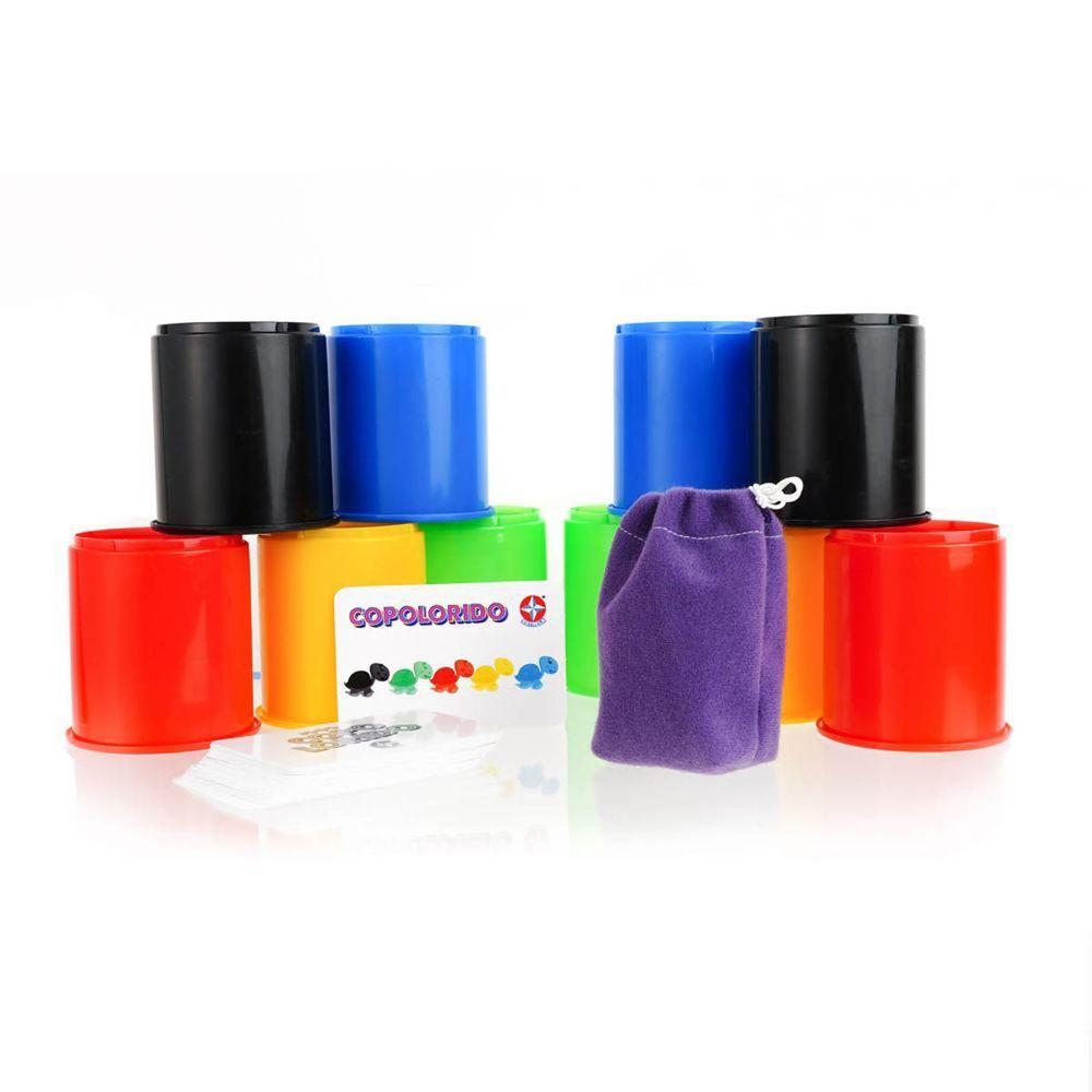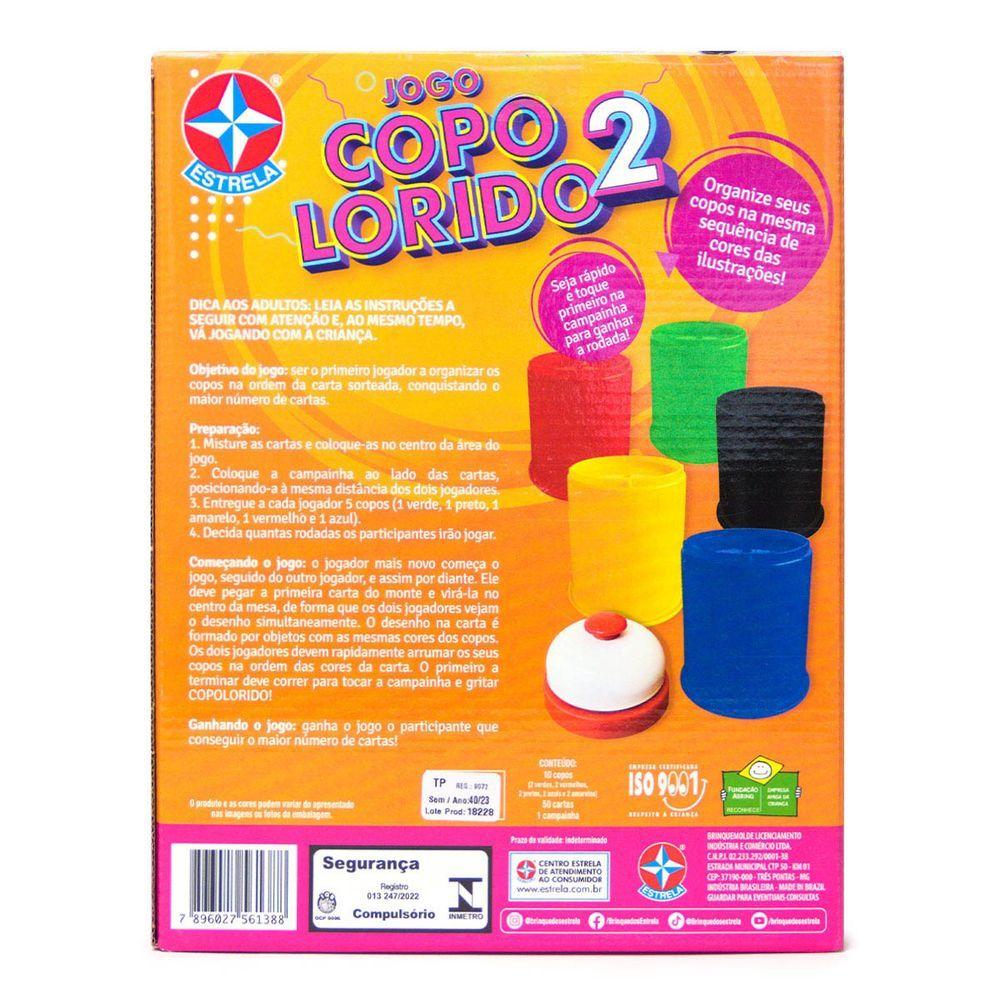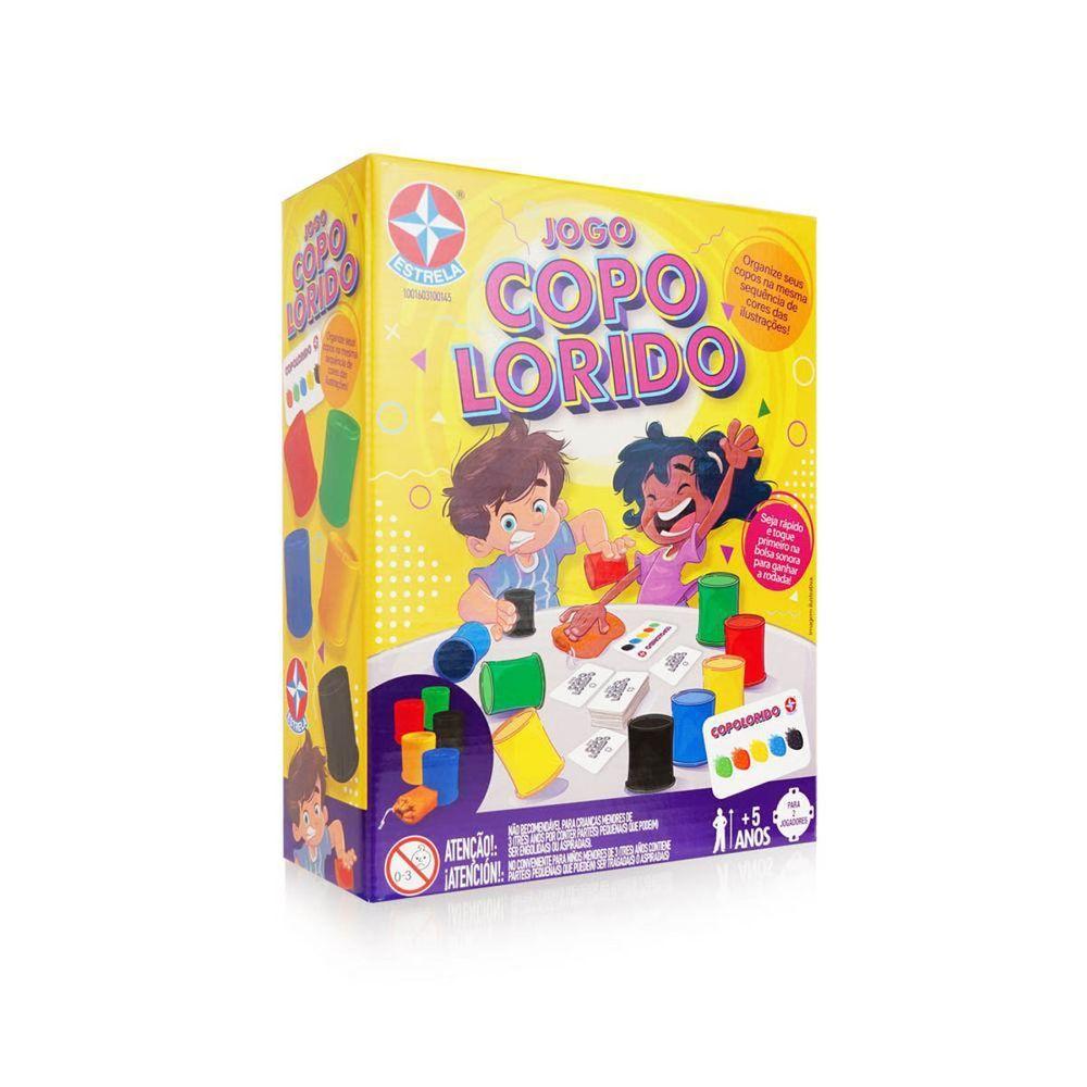 Jogo Copolorido - Brinquedos EstrelaTeste a sua agilidade com o Copolorido! Os jogadores devem colocar seus copos na mesma sequência das cores da carta sorteada. O primeiro a terminar deve correr para tocar na bolsa sonora e gritar COPOLORIDO! Quem for o mais rápido ganha a carta e quem conseguir mais cartas ganha o jogo! Utiliza 2 pilhas 2 A (não incluídas). Idade recomendada (RECOMMENDED_AGE_GROUP): + 5 anos | Formato: Físico | Nome do jogo de tabuleiro: Copolorido | Código Inmetro: 007 595 / 2021