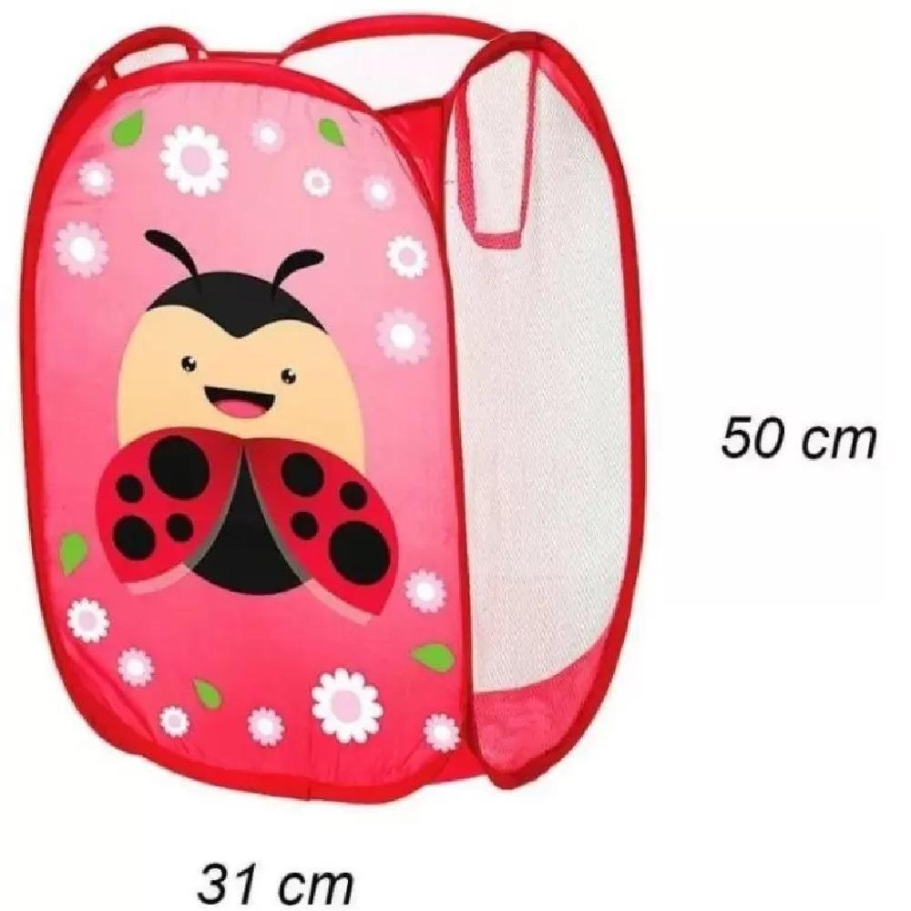 Cesto Organizador Suja Brinquedos Roupa Infantil Telado Multiuso Quarto Banheiro Lavanderia Joaninha
