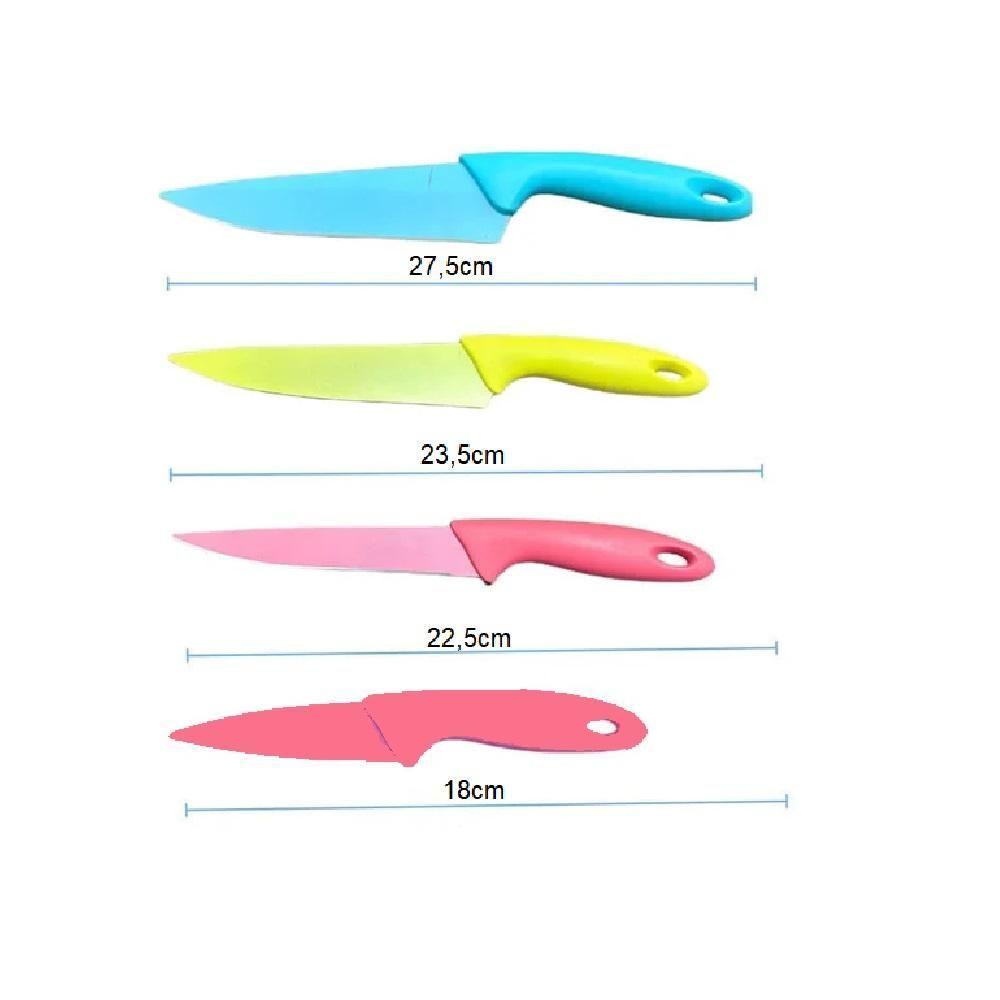 Kit Facas 4 Pecas Coloridas Ceramica Completo Aco Inox Cabo Plastico Colors Cozinha Cheff