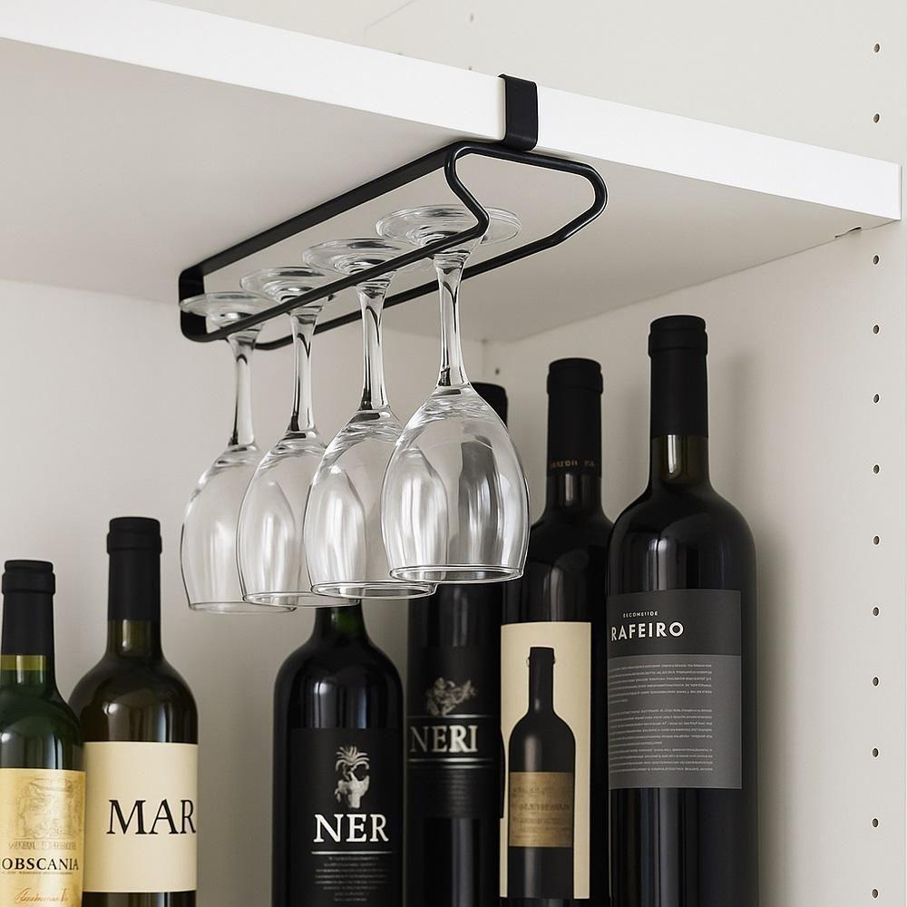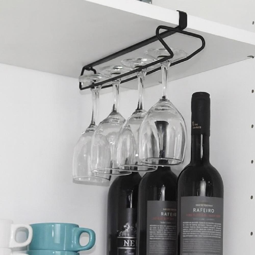 Suporte Suspenso Taças Copos Organizador Encaixe Prateleira Cozinha Bar Adega Preto