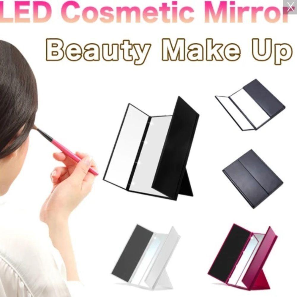 Espelho Led Bolsa Triplo Maquiagem Aumento Dobravel Portatil Iluminacao Mesa Bancada Viagem Camarim