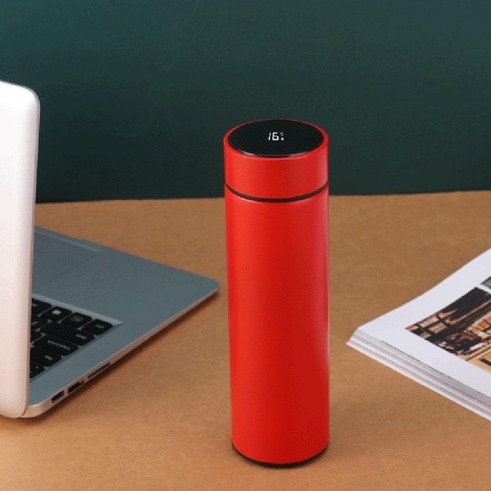 Garrafa Termica 480ml Display Inox Lcd Termometro Copo Termico Medidor Temperatura Vermelho Luxo