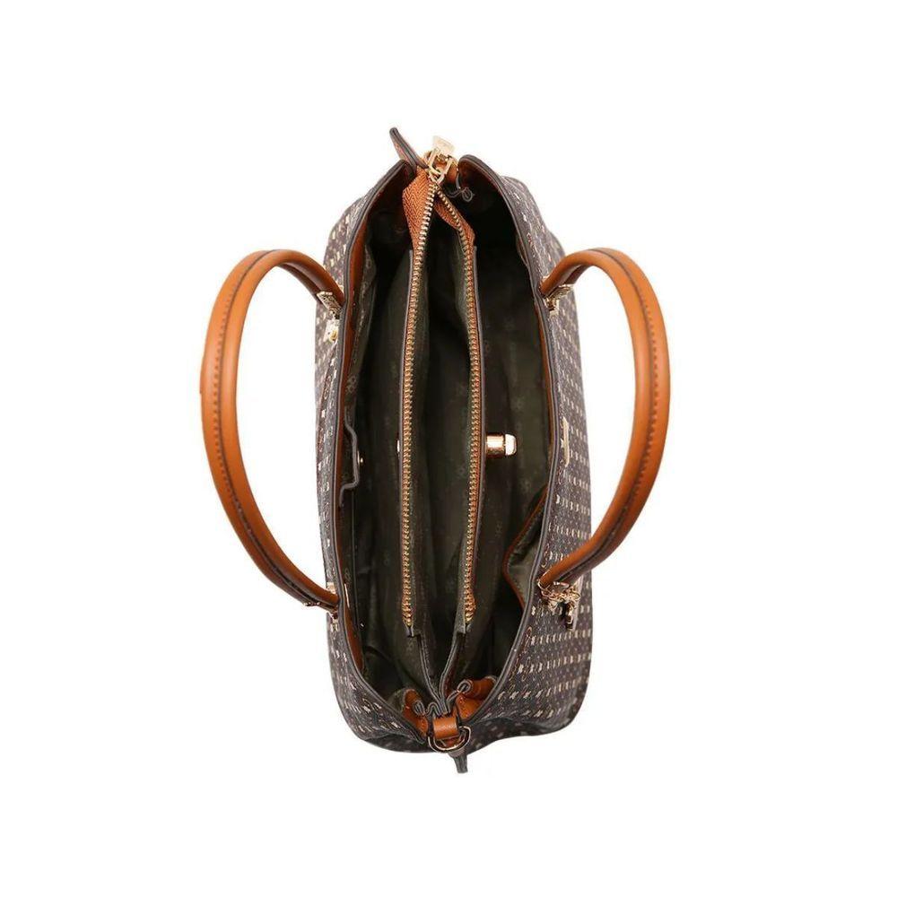 Bolsa Chenson Monograma Baby Urso Cafe UnA Bolsa Chenson Monograma Baby Urso é perfeita para quem busca sofisticação no dia a dia. Confeccionada em material resistente comestampa de monograma e detalhe metálico de ursinho, traz charme e autenticidade. Possui alças de mão fixas e alça transversalajustável e removível. O interior conta com três divisões espaçosas, sendo uma com zíper, ideal para manter tudo bem organizado. Ofechamento principal é em zíper com acabamento refinado. Detalhes em ferragens douradas e base estruturada garantem estilo epraticidade.Ideal para compor looks casuais e sociais com elegância.Marca: ChensonReferência: 3485367Tamanho: UnicoMaterial: SintéticoComprimento: 38cmAltura: 31cmLargura: 18cm