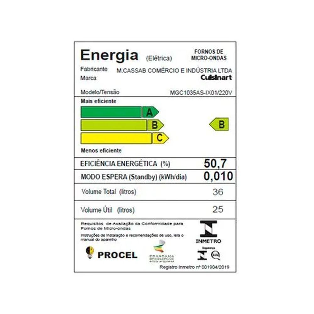 Forno Micro-ondas Cuisinart Arkton Com Grill Elétrico Inox 60cm 38 Litros 4092740121 220V