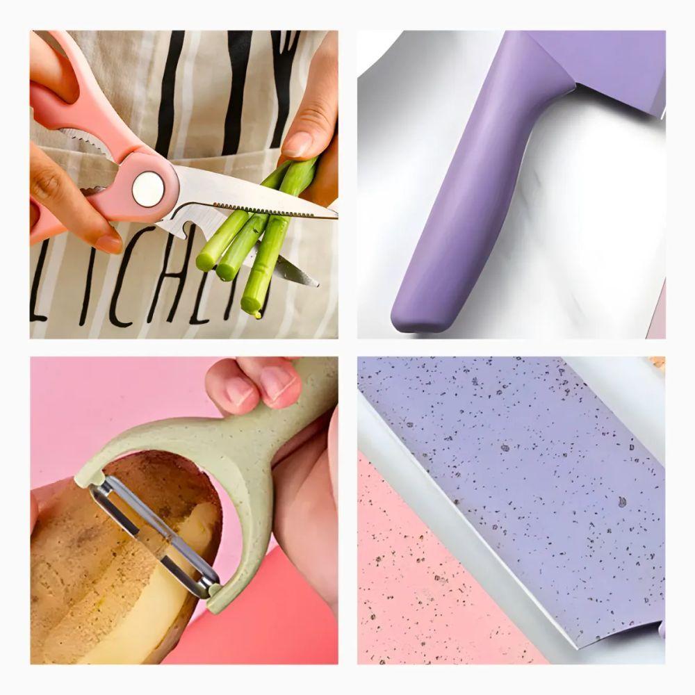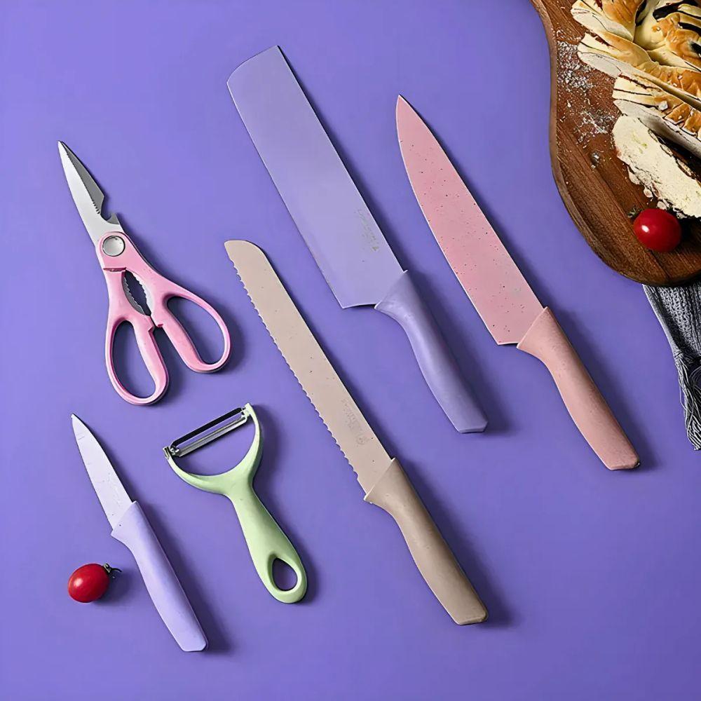 Conjunto De Facas 6 Peças Aço Inoxidável Colorido Multifunci