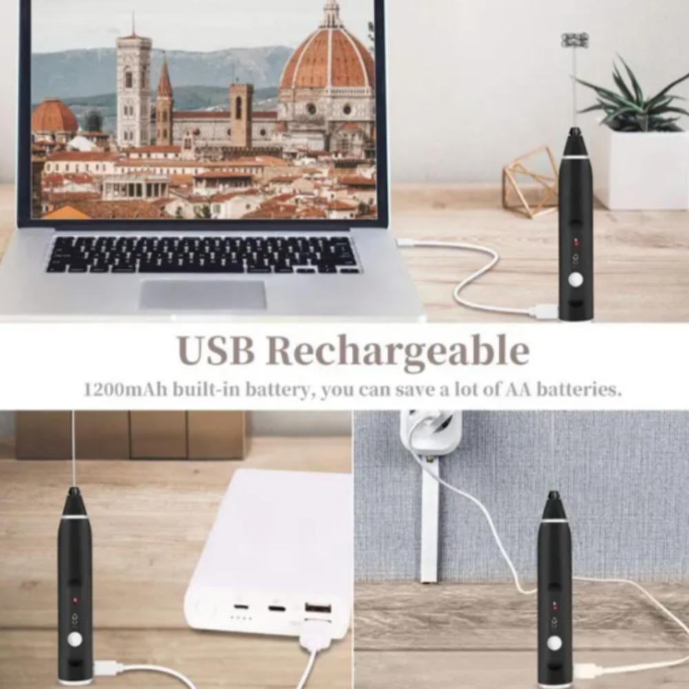Kit Batedeira Mini Mixer Eletrico Misturador 2 Em 1 Portatil Sem Fio Recarregavel Multiuso Espumador Shakes Drinks