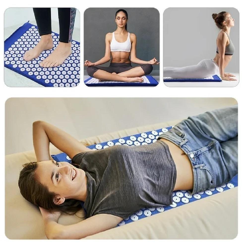 Tapete Terapeutico Acupuntura Massagem Yoga Almofada Travesseiro Relaxante Portatil Alivio Estresse Azul
