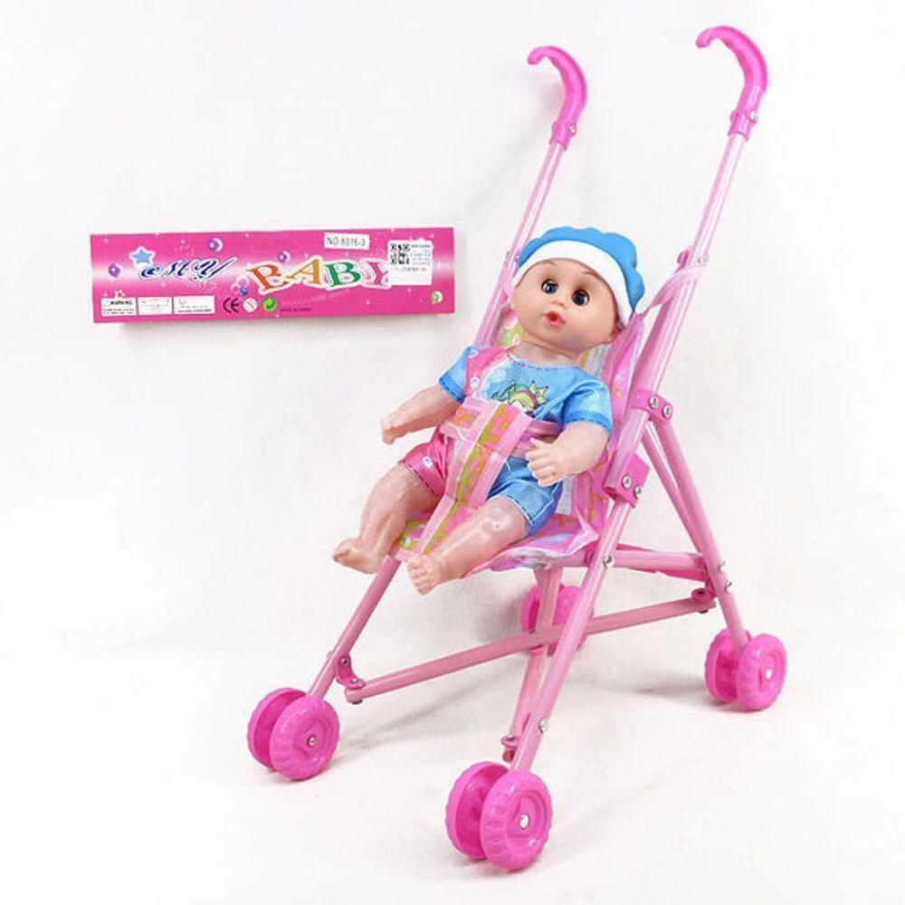 Boneca Bebe Com Carrinho De Passeio Dobravel Infantil Reborn Brinquedo