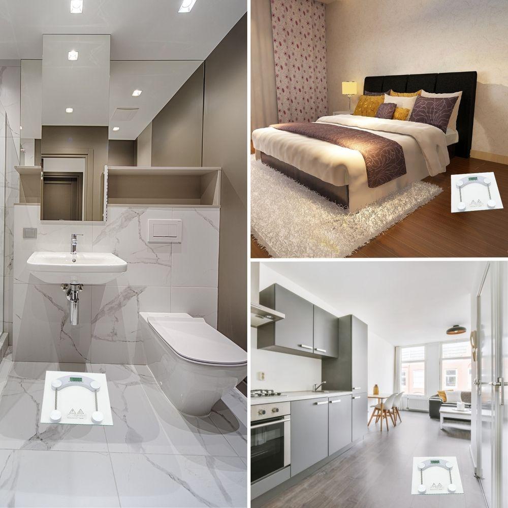 Balança Digital Eletrônica Para Banheiro Academia Quarto Quadrada Transparente De Chão 180kg
