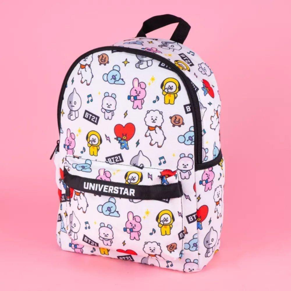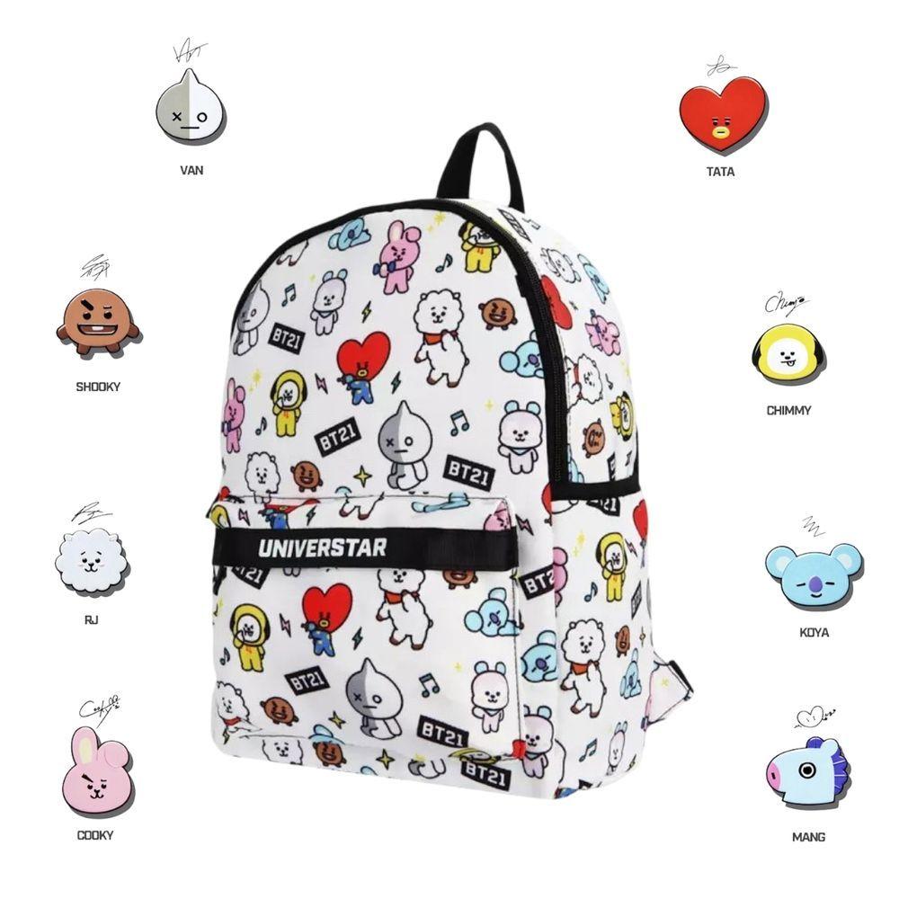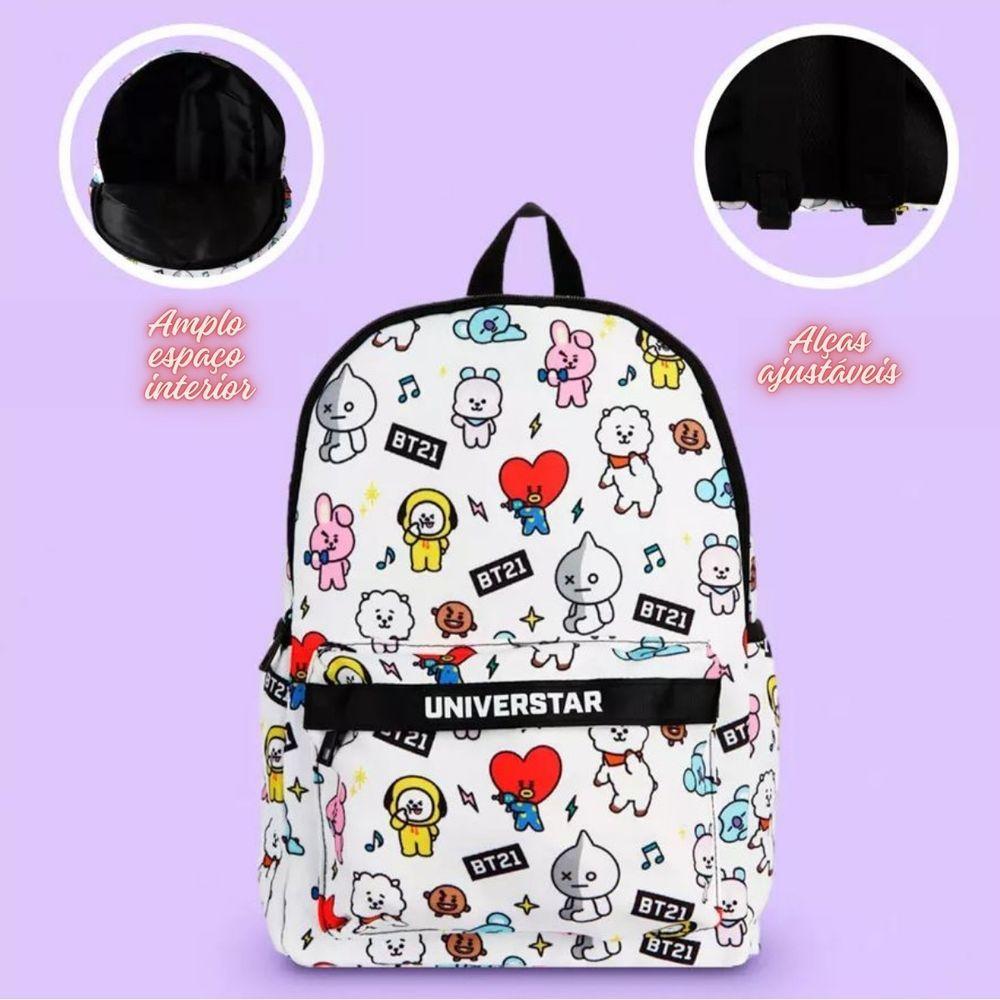 Mochila De Costa Escolar Personagens Bt21 Branca Bts