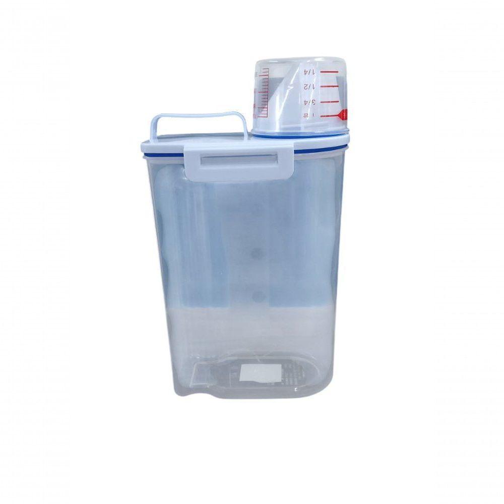 Pote Hermético Multiuso Com Dosador 2kg Guarda Sabão Em PóDeixe sua cozinha ainda mais organizada, funcional e charmosa! Com capacidade para 2kg, ele é perfeito para armazenar grãos, farinhas, condimentos, cereais e até líquidos como água ou sucos. Fabricado em plástico PP de alta qualidade, livre de substâncias tóxicas, resistente a altas temperaturas e super durável, este pote é a combinação ideal entre praticidade e segurança alimentar.Seu design inteligente conta com tampa hermética e vedação em borracha azul, que protege o conteúdo da umidade, poeira e até pragas como insetos e roedores. Além disso, o recipiente é transparente, o que permite visualizar o conteúdo facilmente e controlar o nível de abastecimento sem precisar abrir. O copo medidor integrado, com marcações claras (1 - 3/4 - 1/2 - 1/4 - 50ml - 100ml - 150ml - 180ml), é rosqueável sobre o bico de despejo, facilitando o controle de porções e evitando desperdícios. A alça ergonômica garante mais conforto ao manusear e transportar.Especificações;Dimensões: Alt.: 29cm x Larg.: 8,5cm x Comp.: 15cmCor: Transparente, Branca e AzulPeso aprox.: 226gCapacidade: 2kgContém;01 Pote Hermético Multiuso Com Dosador - 2kg