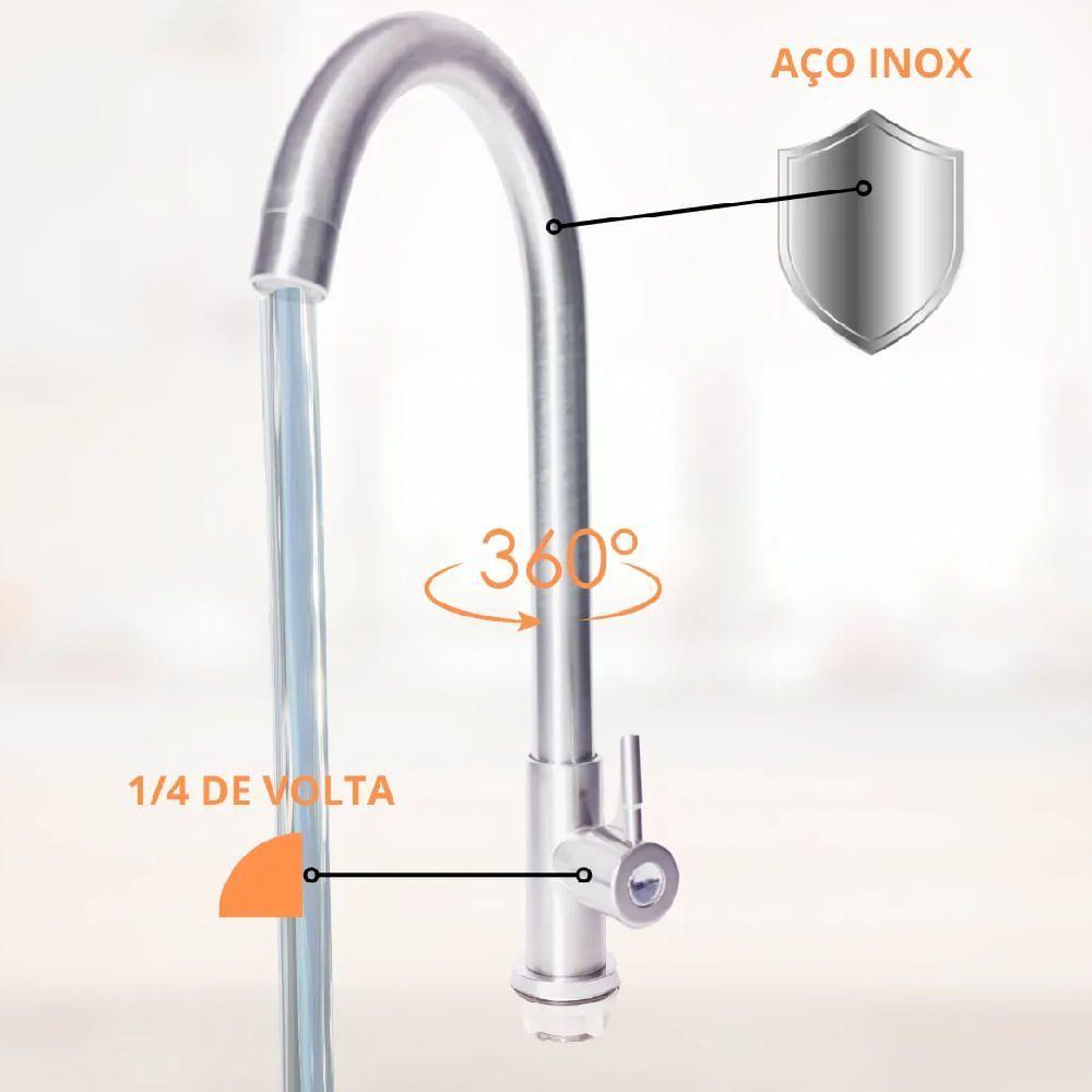 Torneira Gourmet Para Cozinha Em Inox Escovado Alta 37cm - Tor-o23 - Stillus Home