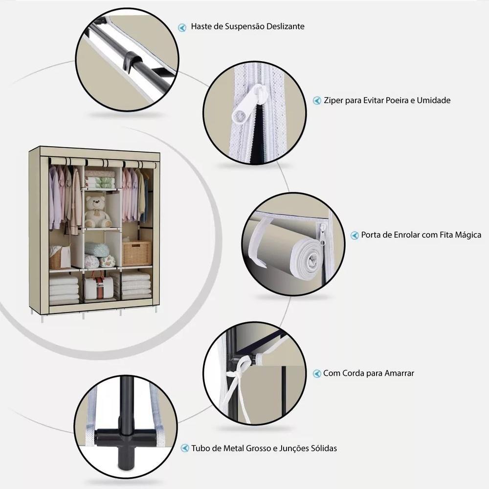 Guarda Roupa Cabideiro Portatil Prateleiras Dobravel Armario Arara Grande Organizador Camping