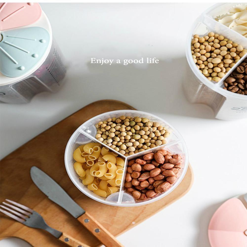 Porta Mantimentos Triplo Pote Alimentos 3 Em 1 Divisorias Dispenser Lavanderia Sabao Em Pó Medidor