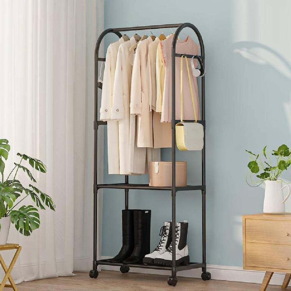 Arara Guarda Roupas Estante 2 Prateleiras Carrinho Organizador Cabideiro Quarto Vestiario Sapateira