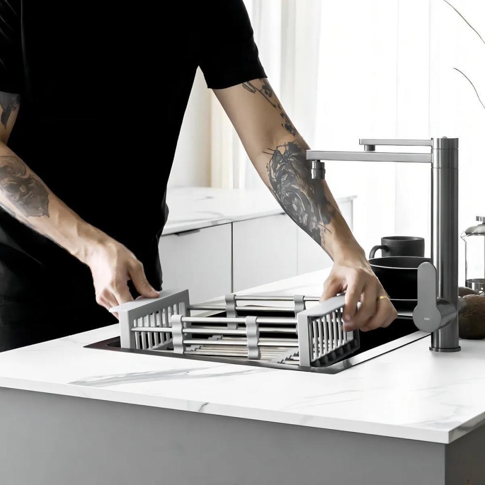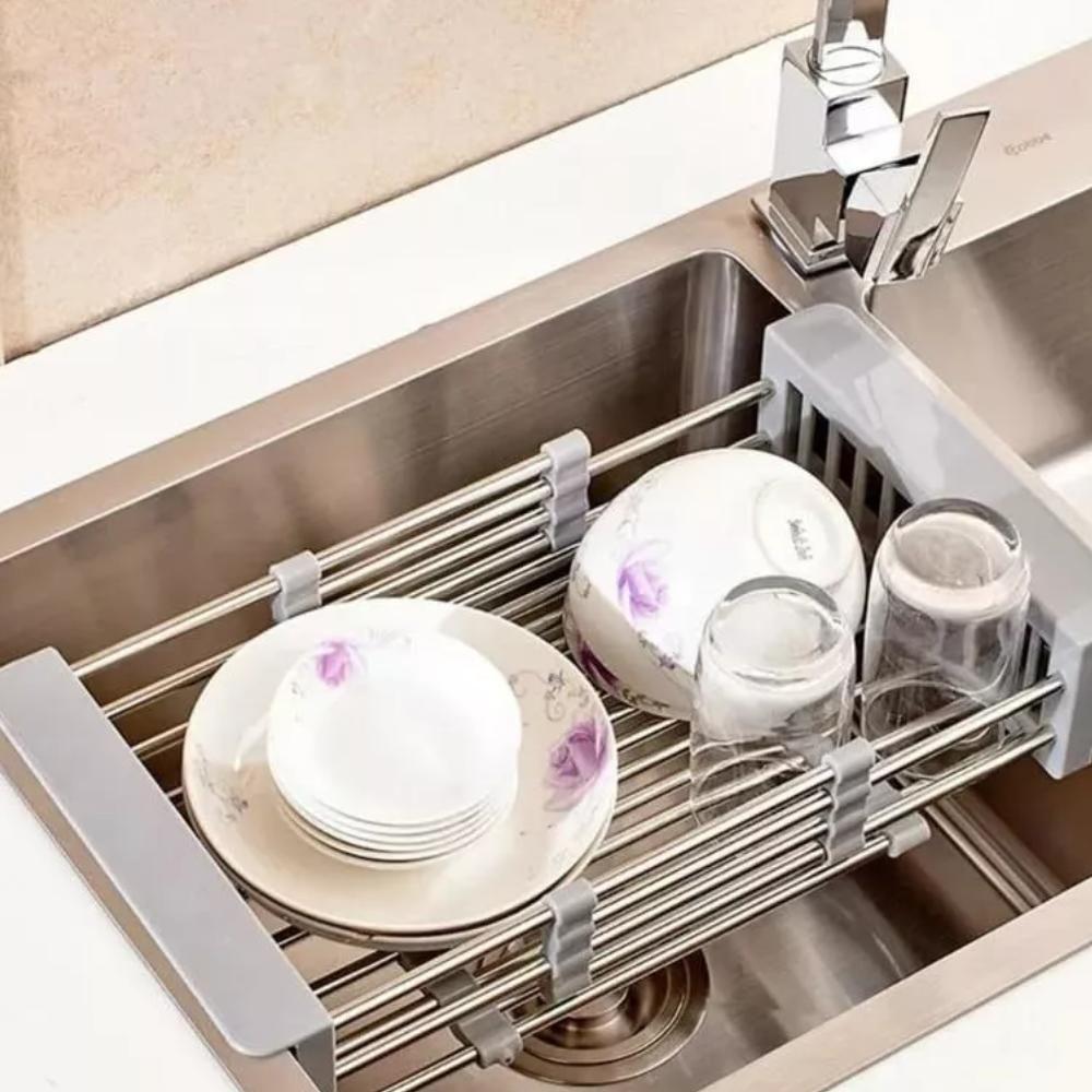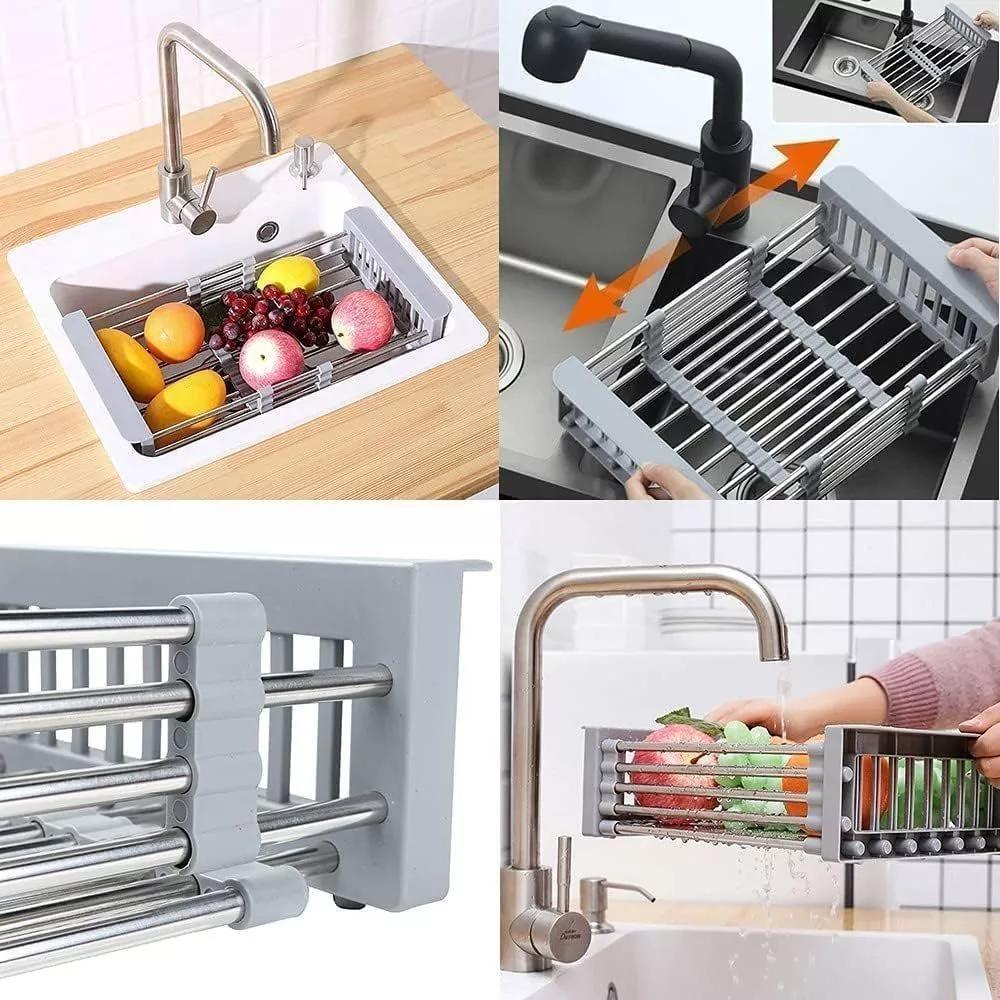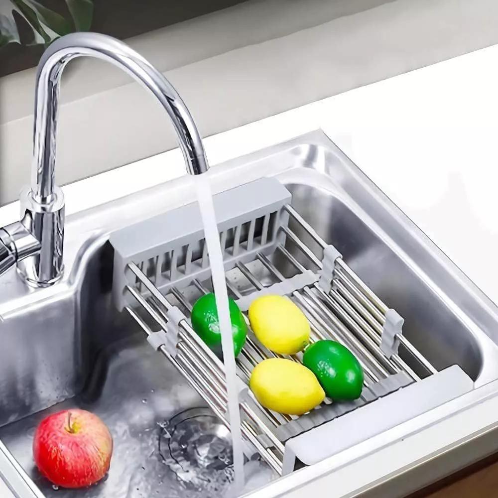 Escorredor Pia Inox Retratil Ajustavel Cozinha Louca Suporte Lavar Frutas Legumes Verduras Cesto