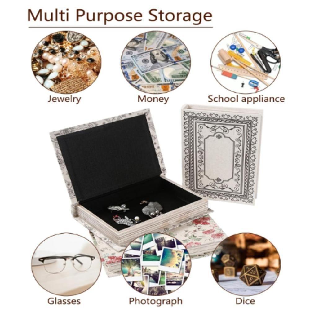 Kit 3 Livro Camuflado Book Cofre Decorativo Fake Porta Joias Documentos Caixa Organizador Madeira