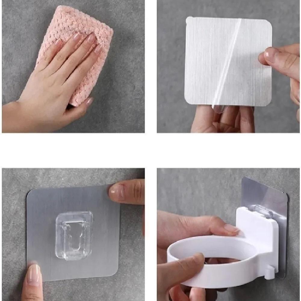 Suporte Secador Cabelo Sem Furo Organizador Fios Adesivo Parede 2 Em 1 Gancho Pendurar Porta
