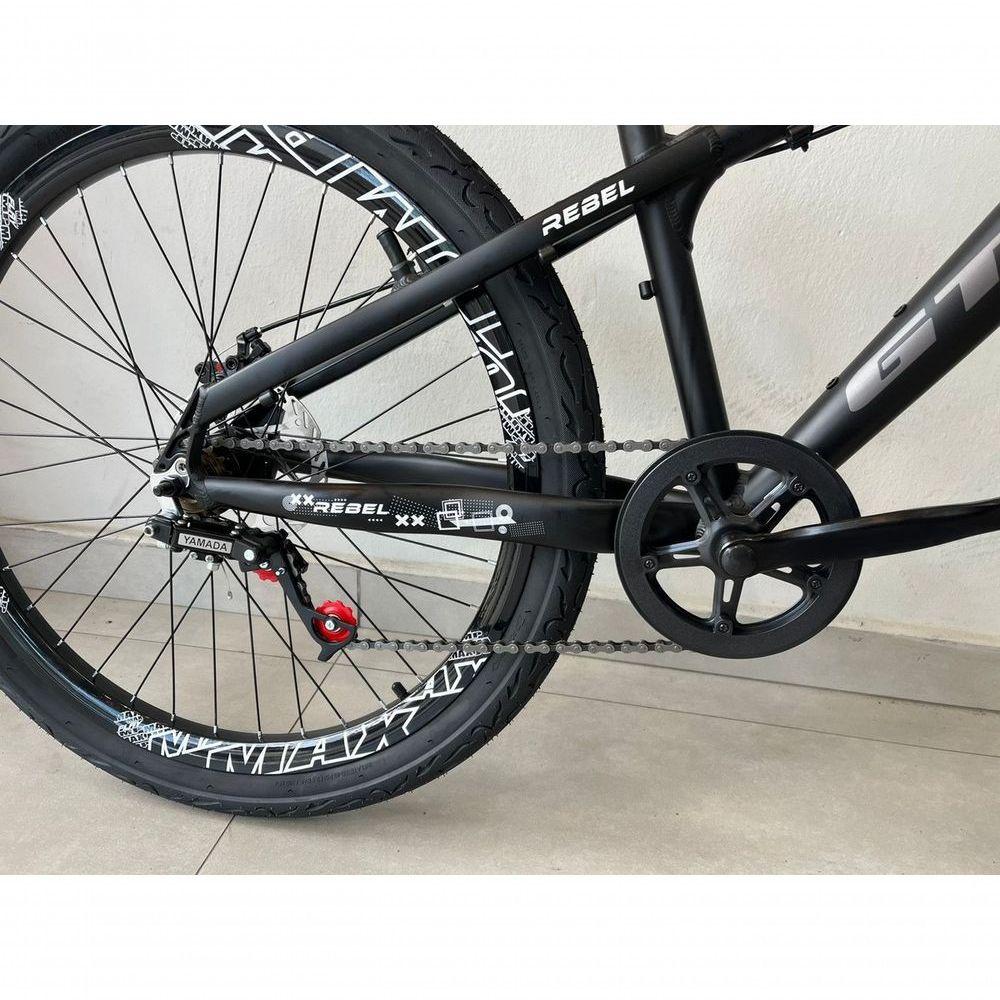 Bicicleta Aro 26 Gta Rebel Freeride Downhill Single Aros Vmaxx Freio A Disco Pneu Flame Preto pretoA Bicicleta 26 Aluminio Freeride Rebel GTA Single Freio a Disco Mecanico Suspensão Dianteira é a escolha ideal para os amantes de aventuras sobre duas rodas. Com um quadro em alumínio leve e resistente, esta bicicleta foi projetada para oferecer desempenho e durabilidade em desafios extremos. Seu design freeride permite que você mande as melhores e mais desafiadoras manobras com confiança e estilo.Equipada com freios a disco mecânico tanto na frente quanto atrás, a Rebel GTA garante paradas seguras e precisas, mesmo em descidas íngremes.A suspensão dianteira proporciona conforto e controle, absorvendo impactos e garantindo uma condução suave. Com um peso de apenas 15 kg, é fácil de manobrar e transportar, ideal para quem busca praticidade sem abrir mão da performance.Vamos conferir os componentes dessa máquina!- Quadro: GTA Rebel Aluminio 6061, Tamanho 14'- Suspensão: Dianteira Aço Preta Básica- Aro: 26 Vzan VMAXX DH (o mais largo da categoria)- Camara: 26 Bico Grosso- Cambio Traseiro: Importado Index- Canote de Selim: Preto 27.2mm- Corrente: Indexada- Cubo: Preto Rosca Esfera Para Disco de 6P Com Blocagem- Freio: A Disco Mecânico discos 160mm- Guidão: 31.8mm Preto- Movimento Central: Blindado Preto 122mm- Movimento Direção: Semi Integrado Preto Ahead- Pedal: Nylon Plataforma 9/16- Pedivela: Single 34d Preto- Pneu: 26x2,125 paco Tipo Flame Preto- Raio: 251X2.0 Preto- Roda Livre Pinhão Single- Selim: GTA Freeride- Suporte de Guidão: 31.8x60mm Preto AlumínioBicicleta pré montada, vai precisar apenas fixar a roda dianteira, guidão, selim e pedais. Recomendamos que seja feita uma revisão por um técnico após a recebimento do produto, para reajuste e regulagem, pois no transporte pode acontecer de alguma peça soltar ou desregularFotos meramente ilustrativas