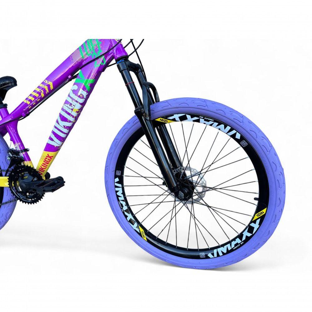 Bicicleta Aro 26 Vikingx Tuff Freeride 21v Aro Vmaxx Freio A Disco Garfo Suspensão Pneu Flame Roxo-amarelo X25