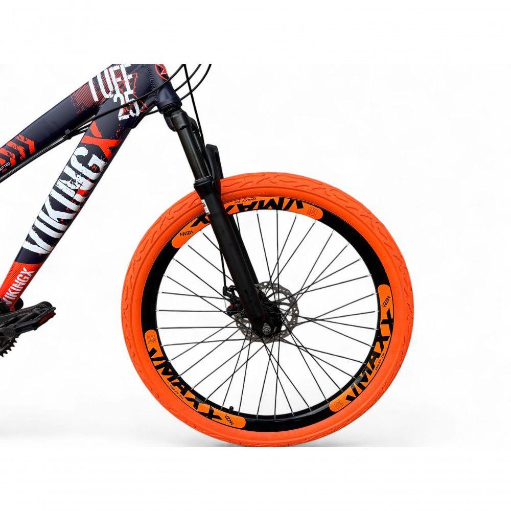 Bicicleta Aro 26 Vikingx Tuff Freio Hidráulico 21v Freeride Rodas Vmaxx Suspensão Pneu Flame Roxo-Laranja X25