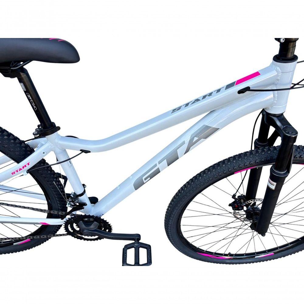 Bicicleta Aro 29 Gta Start Alumínio 27v K7 Freio A Disco Garfo Suspensão Mountain Bike branco-cinza-rosa Tam: 15